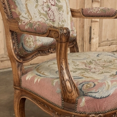 19th Century French Louis XIV Walnut Armchair with Needlepoint Tapestry
