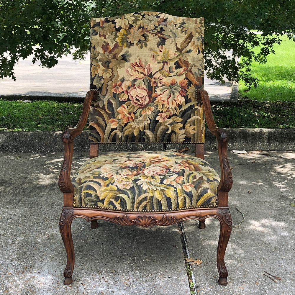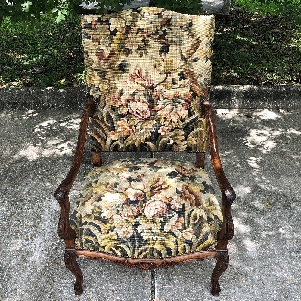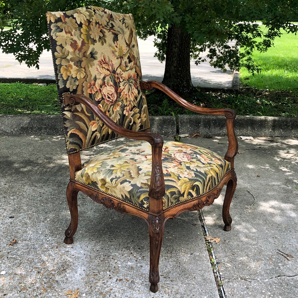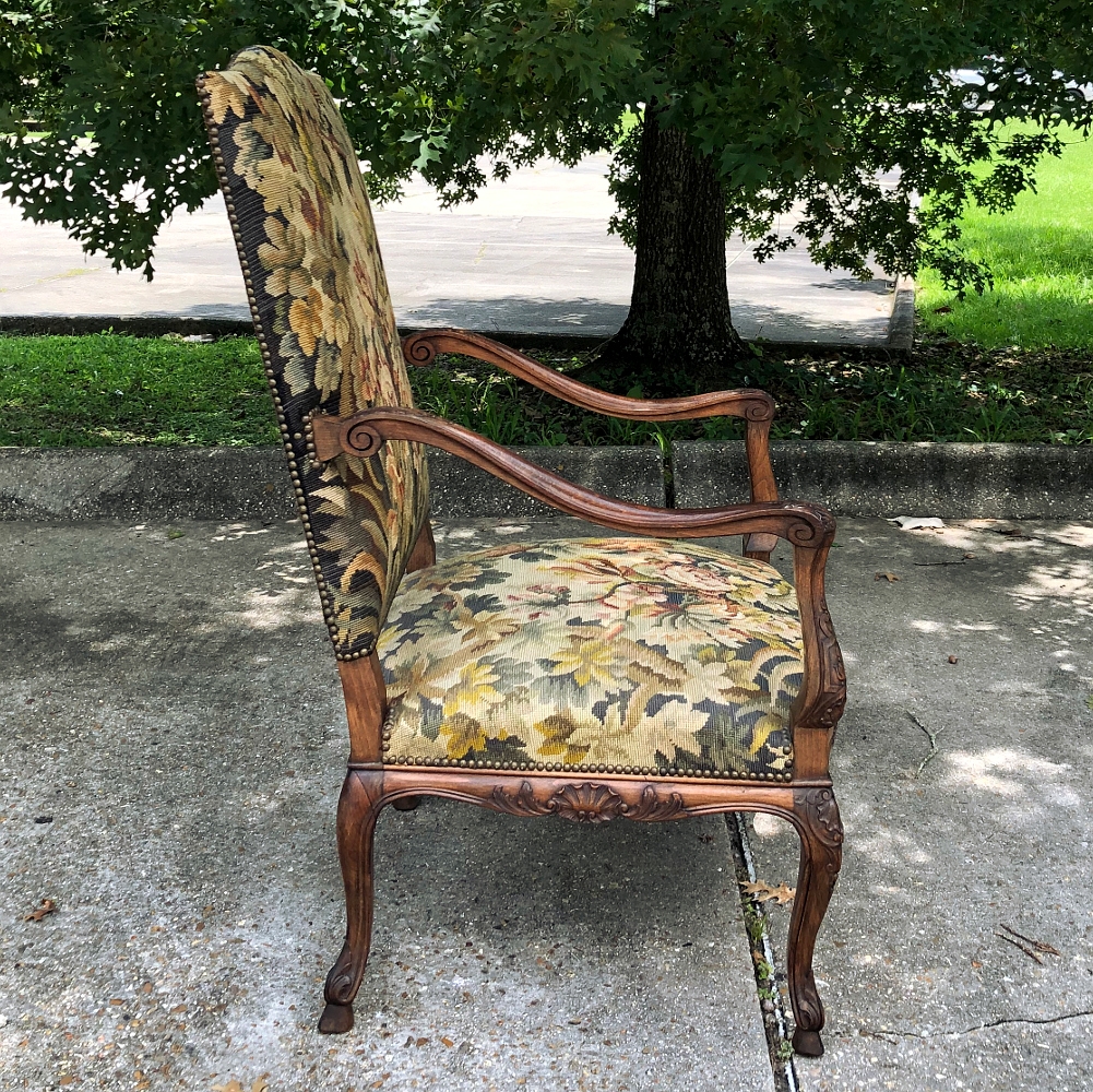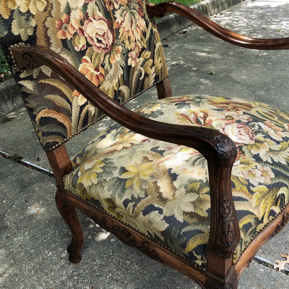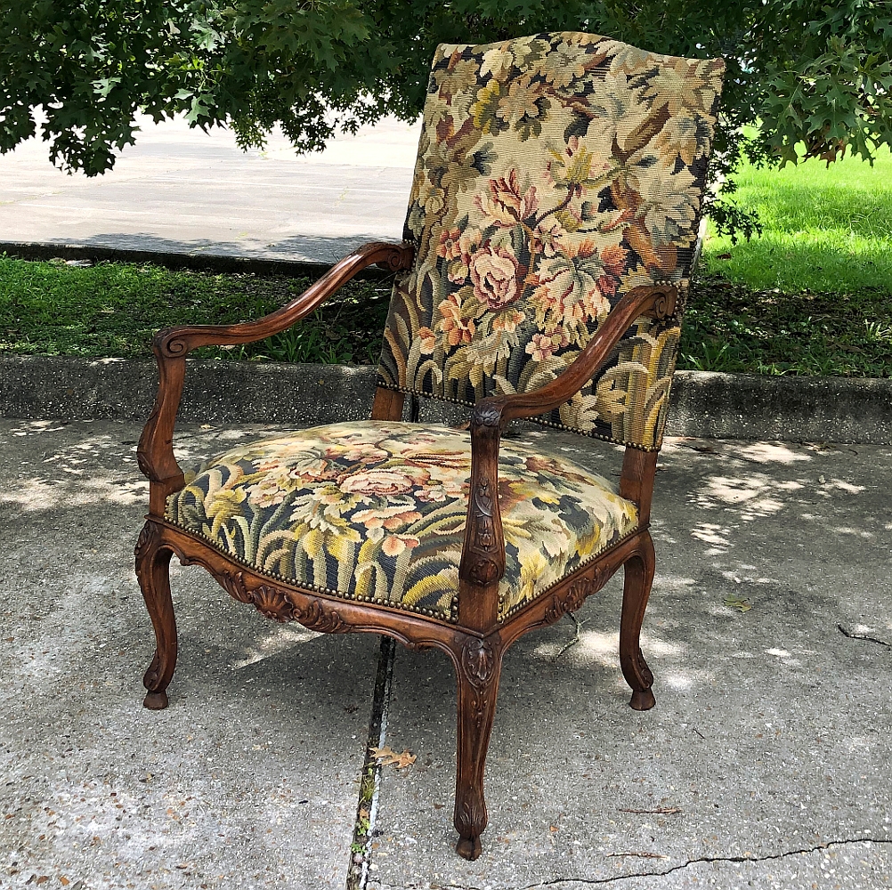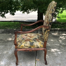 19th Century French Louis XV Fruitwood Armchair ~ Fauteuil with Needlepoint Tapestry