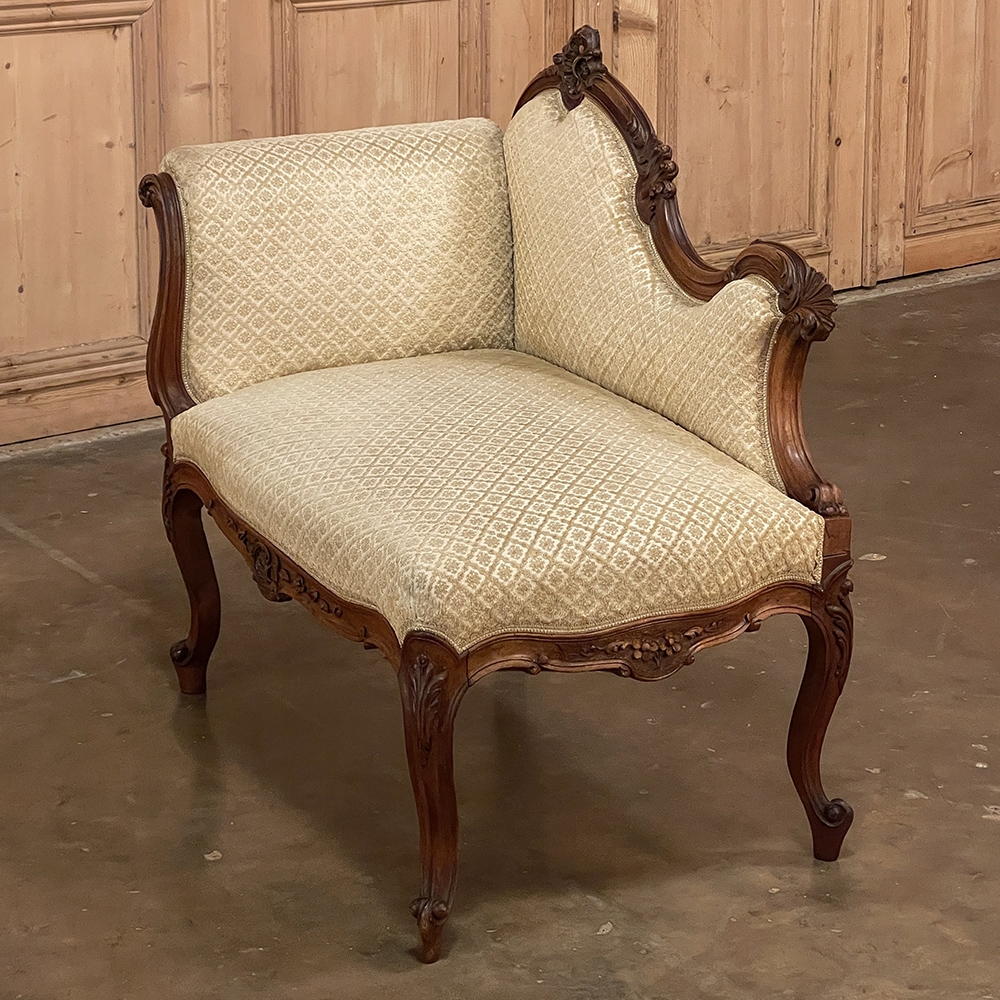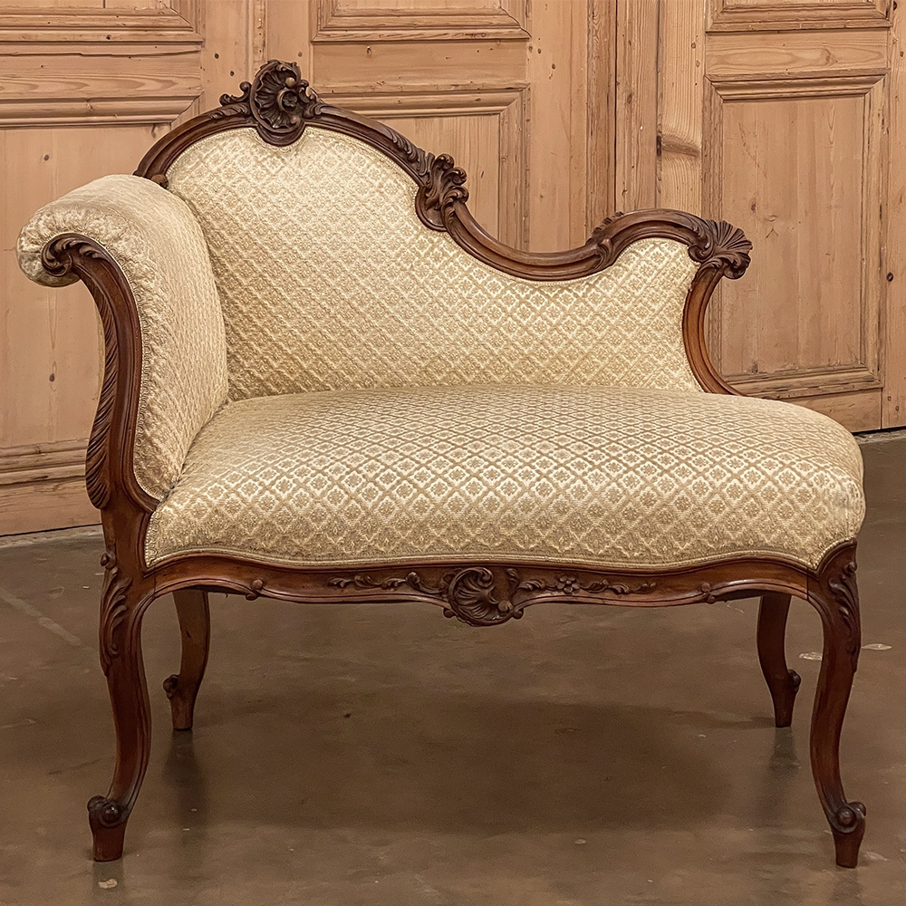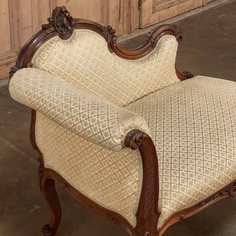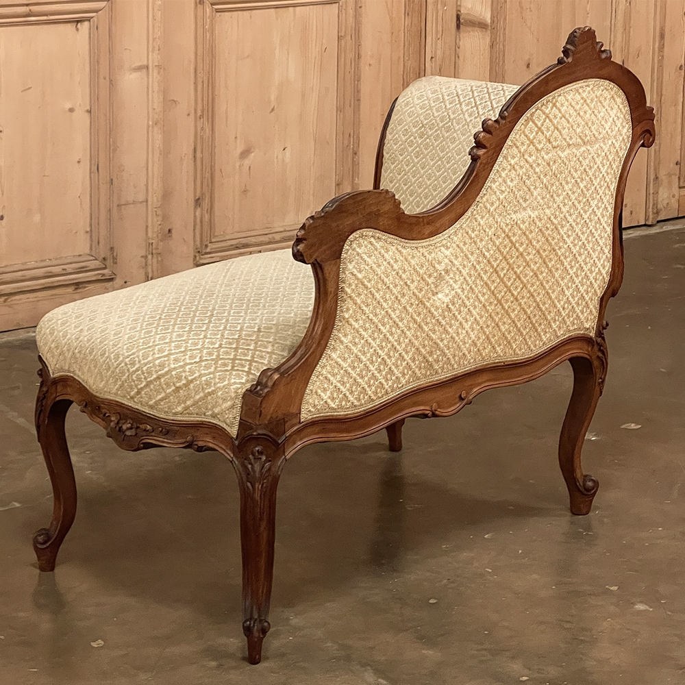 19th Century French Louis XV Walnut Petite Chaise Lounge