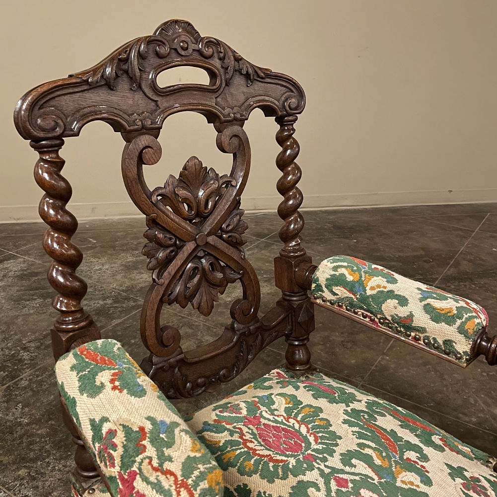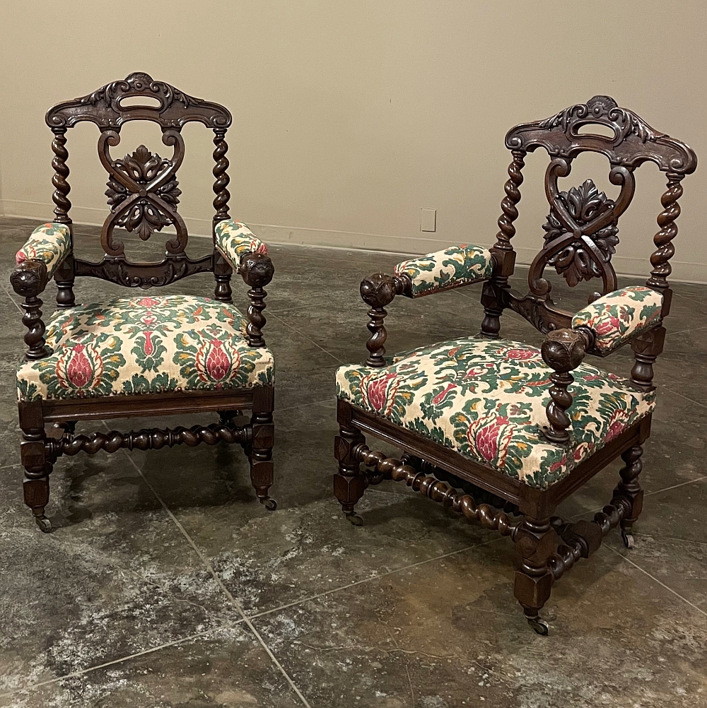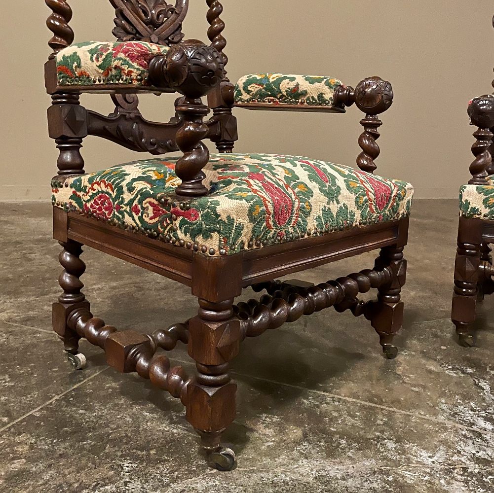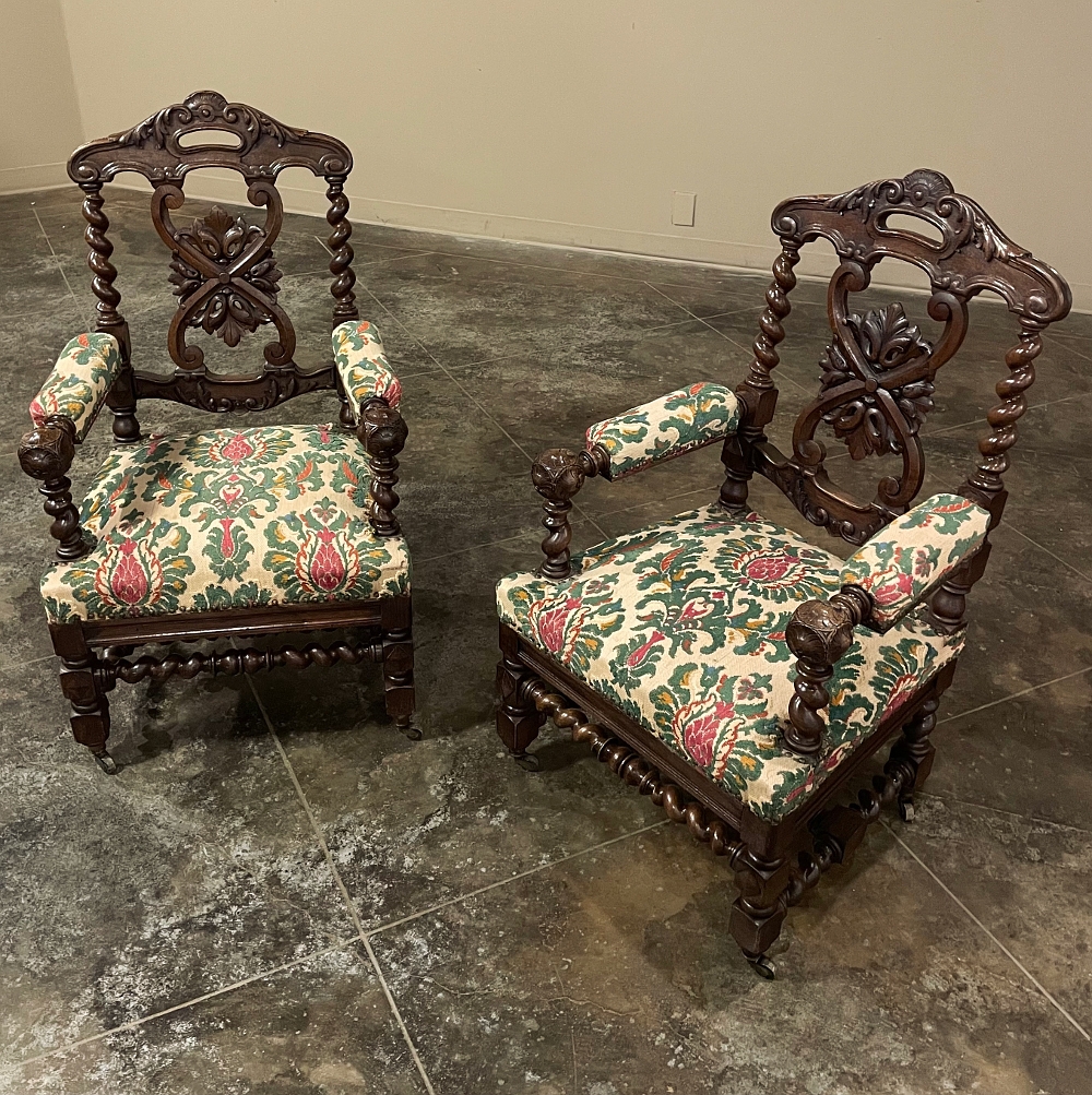 19th Century Renaissance Revival / Louis XIII Style Barley Twist Armchairs in Solid Oak