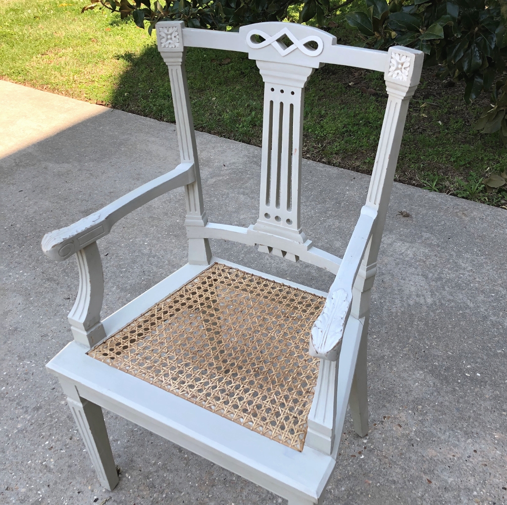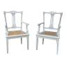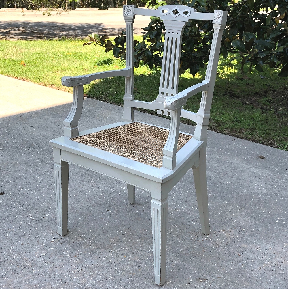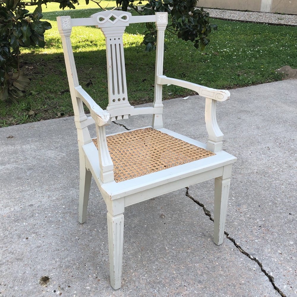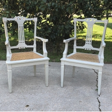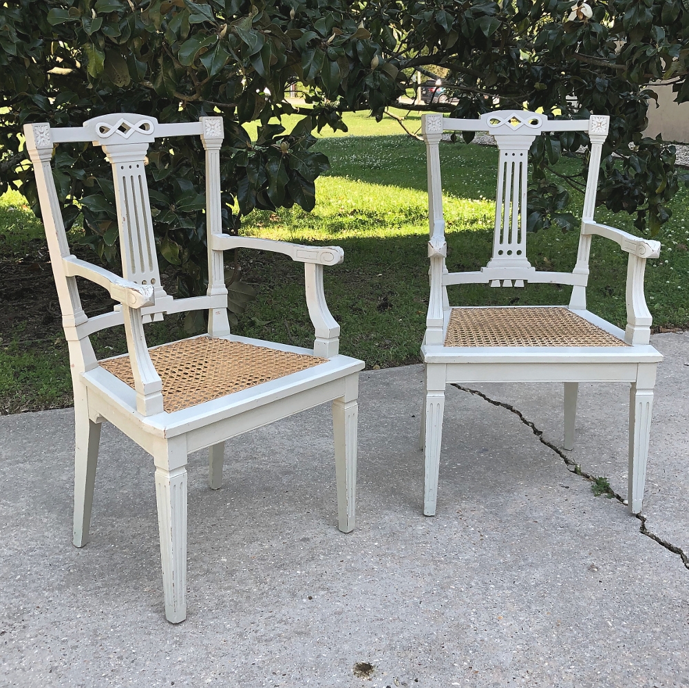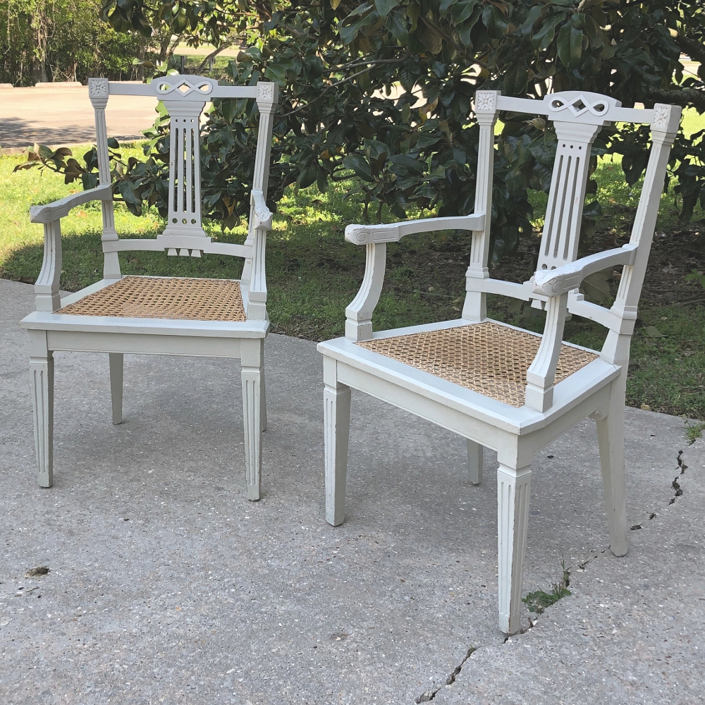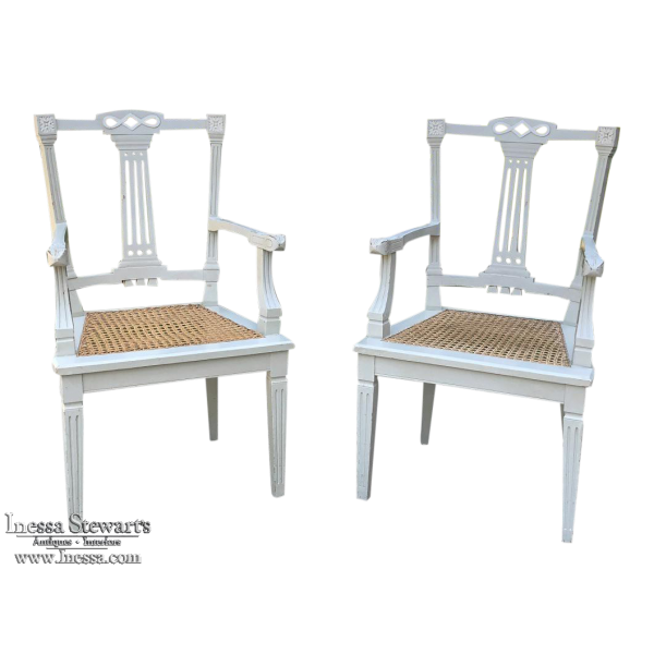 Pair 19th Century Swedish Louis XVI Painted & Caned Armchairs