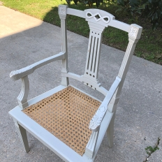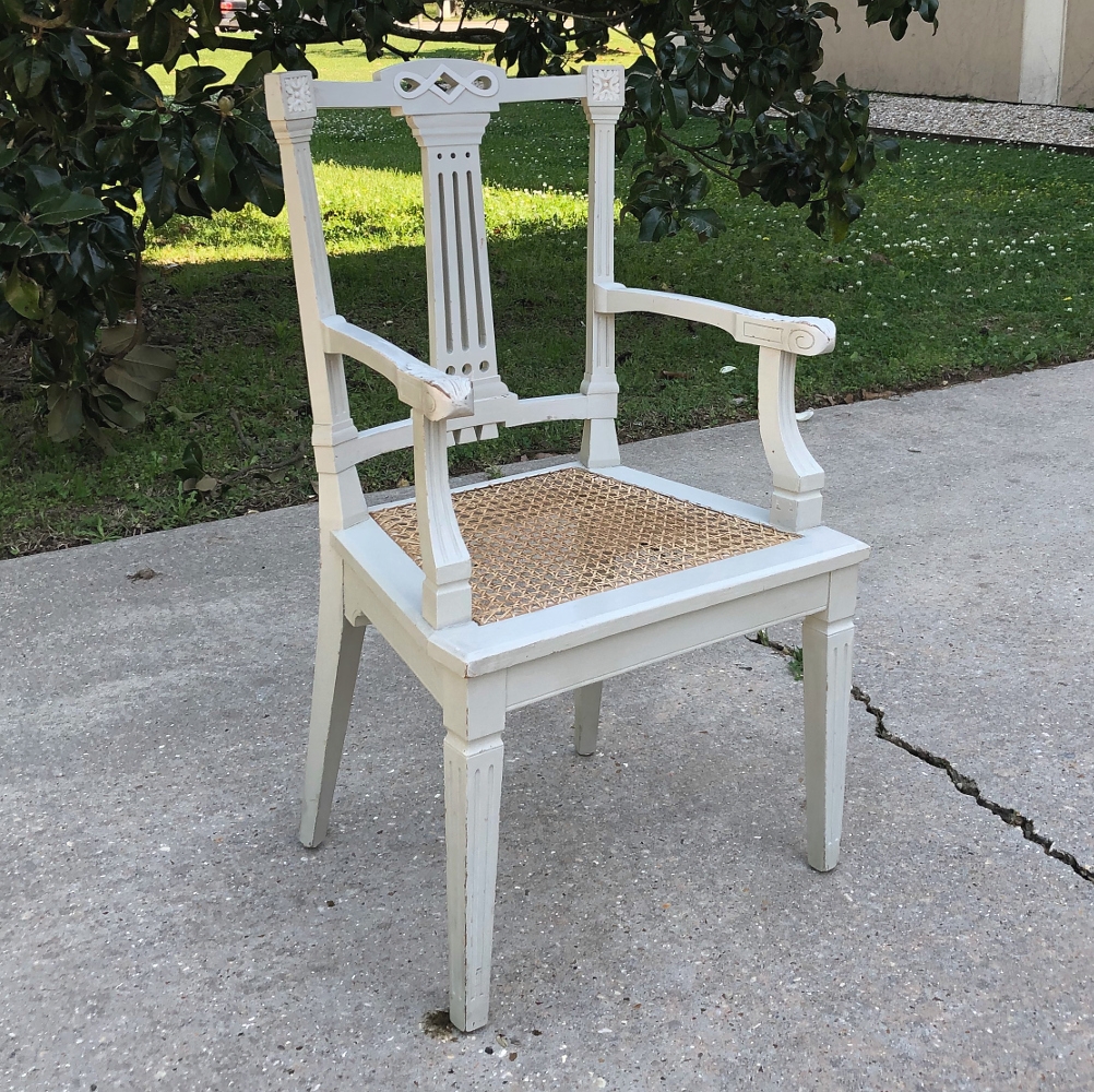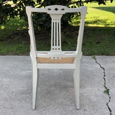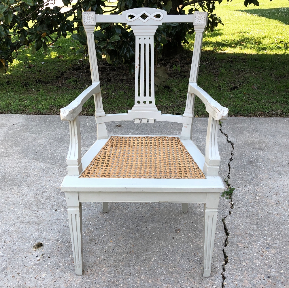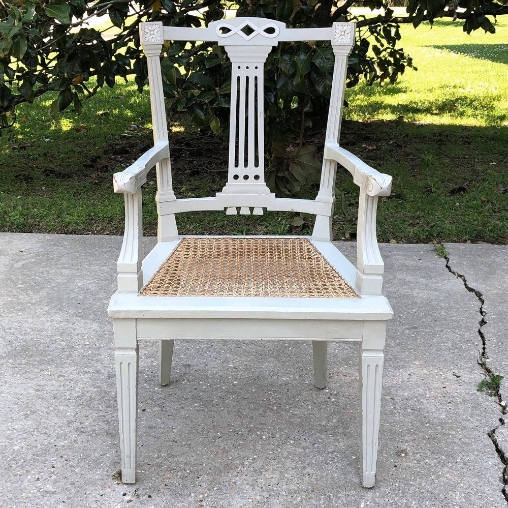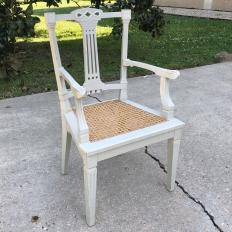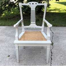 SalePair of 19th Century Swedish Louis XVI Painted & Caned Armchairs is the perfect choice for a cozy nook or entryway (especially with the original matching salon pieces)! Timeless styling is enhanced by the painted off-white finish which has achieved a lovely patina over the decades, especially so because of the pure white enhancements on the trim. Ready to upholster in your coordinating fabric, each will serve your family with aplomb for many decades to come! (cane is damaged on one seat)