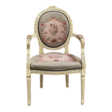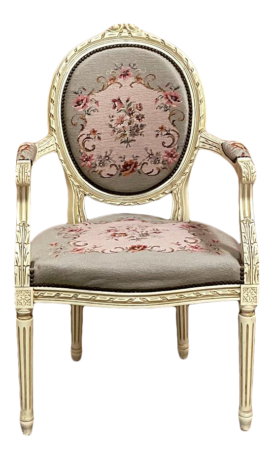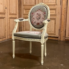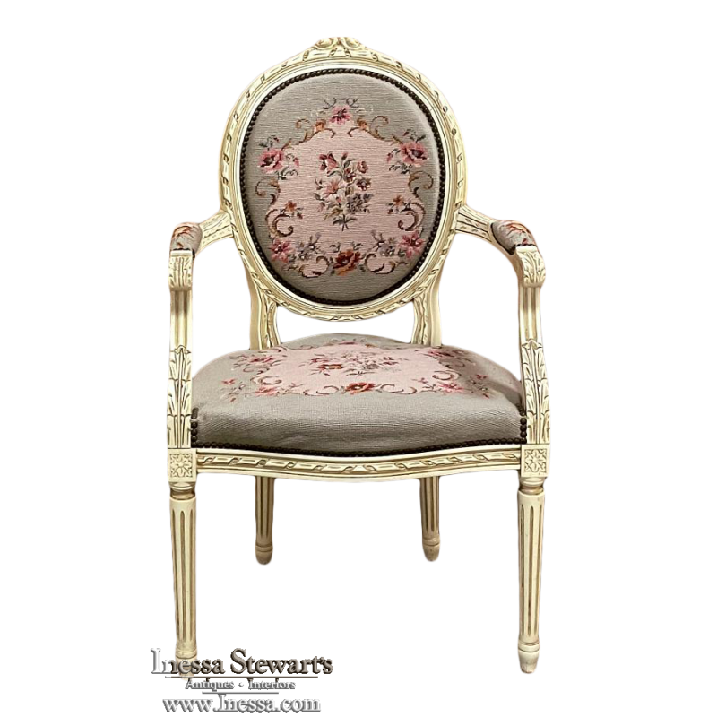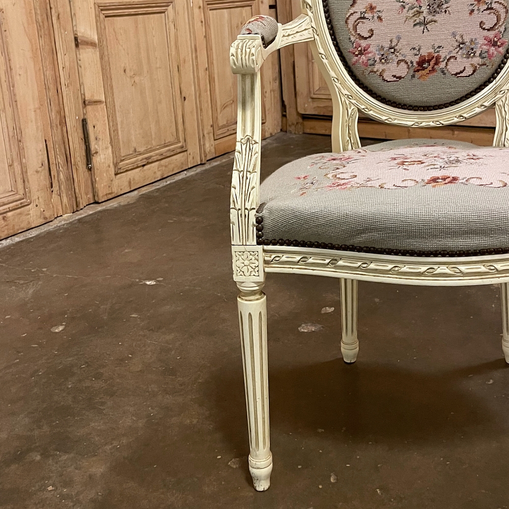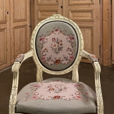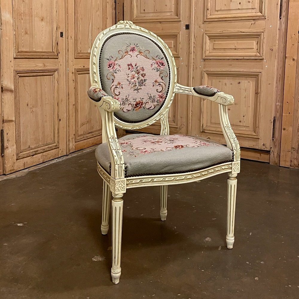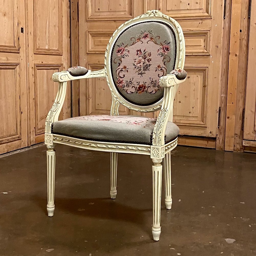 Antique French Louis XVI Painted Armchair with Needlepoint Tapestry