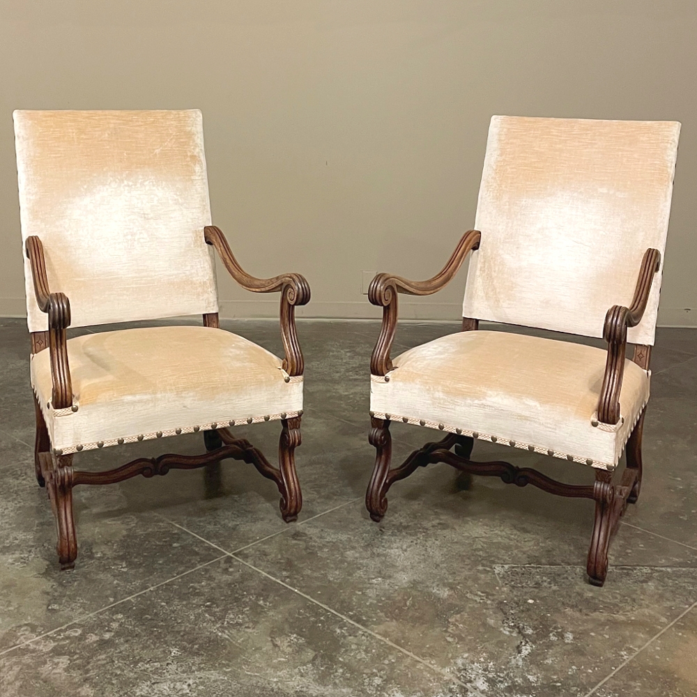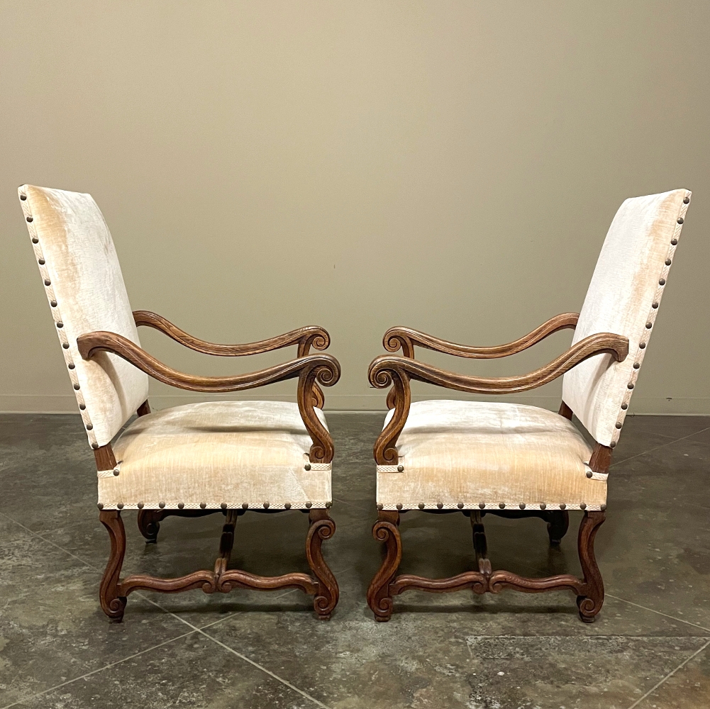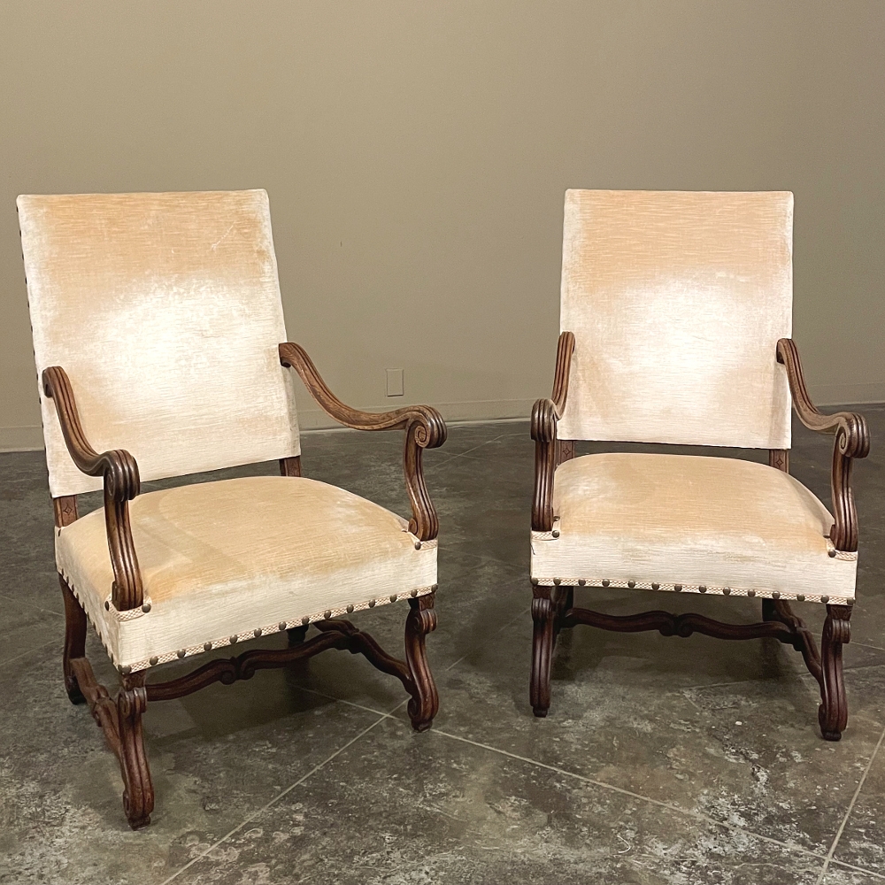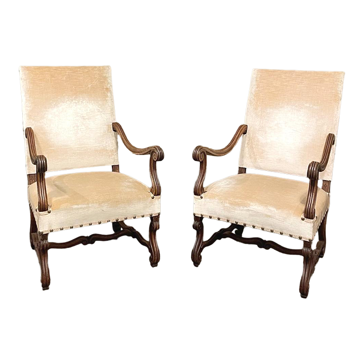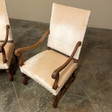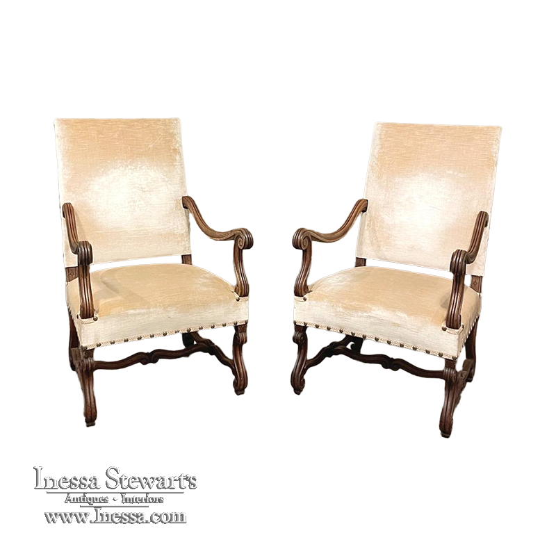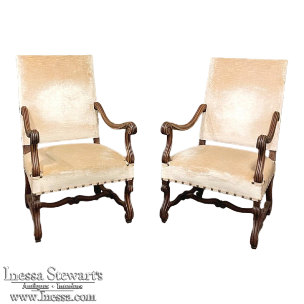 Pair 19th Century French Louis XIV Armchairs ~ Fauteuils with Mohair
