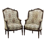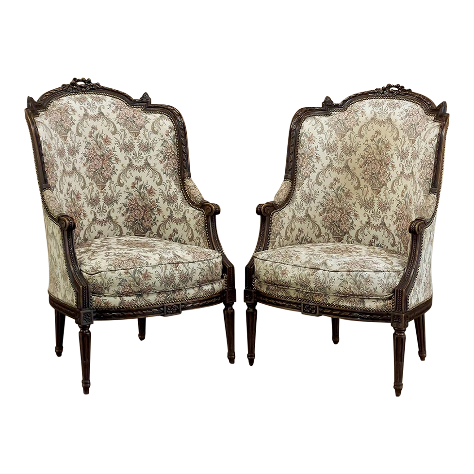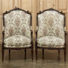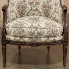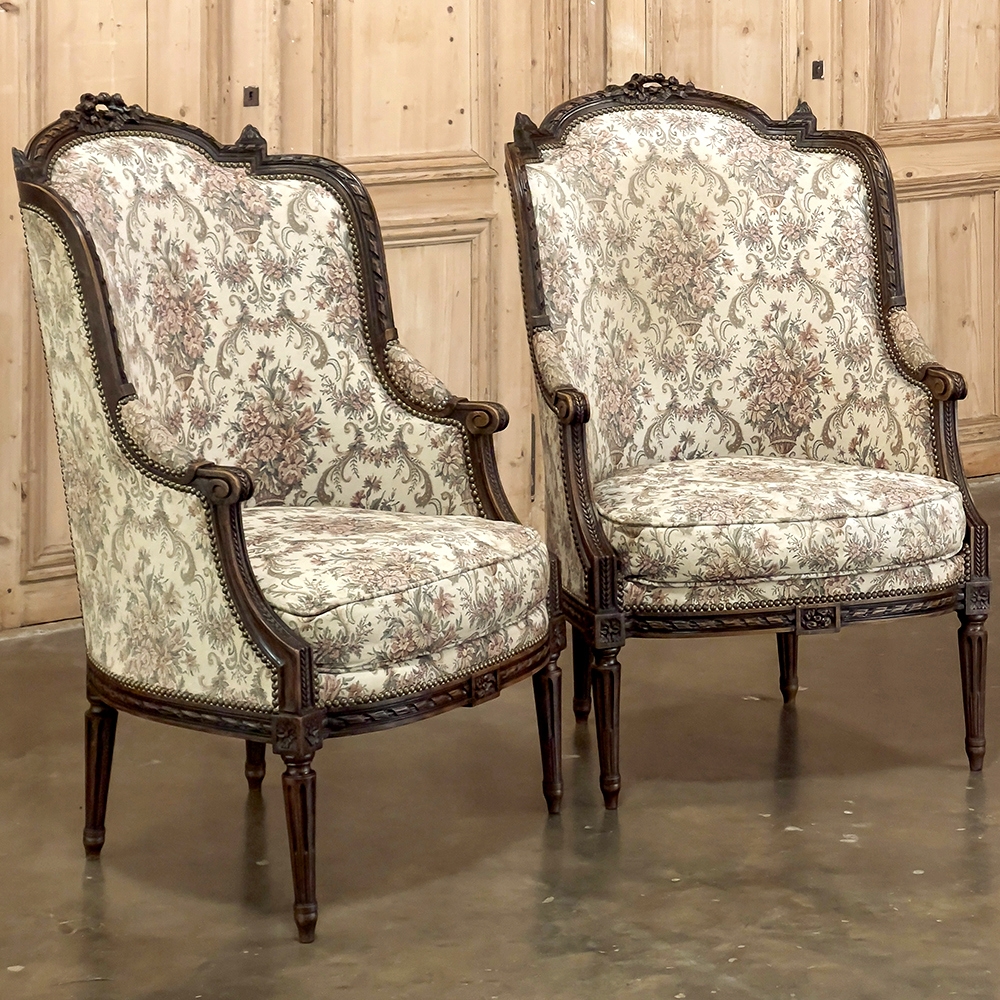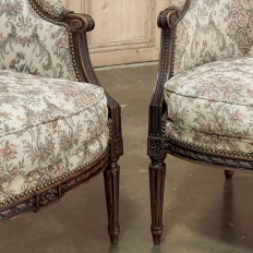 Pair 19th Century French Louis XVI Walnut Bergeres ~ Armchairs