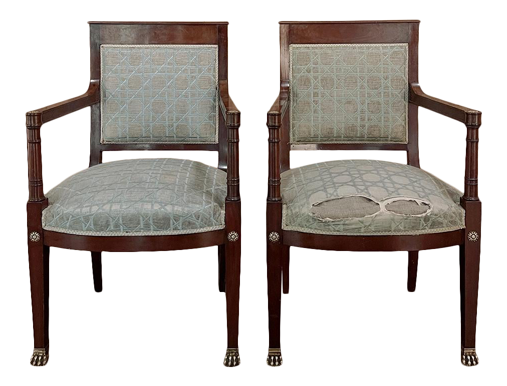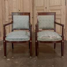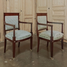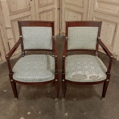 Pair 19th Century French Napoleon III Period Mahogany Armchairs