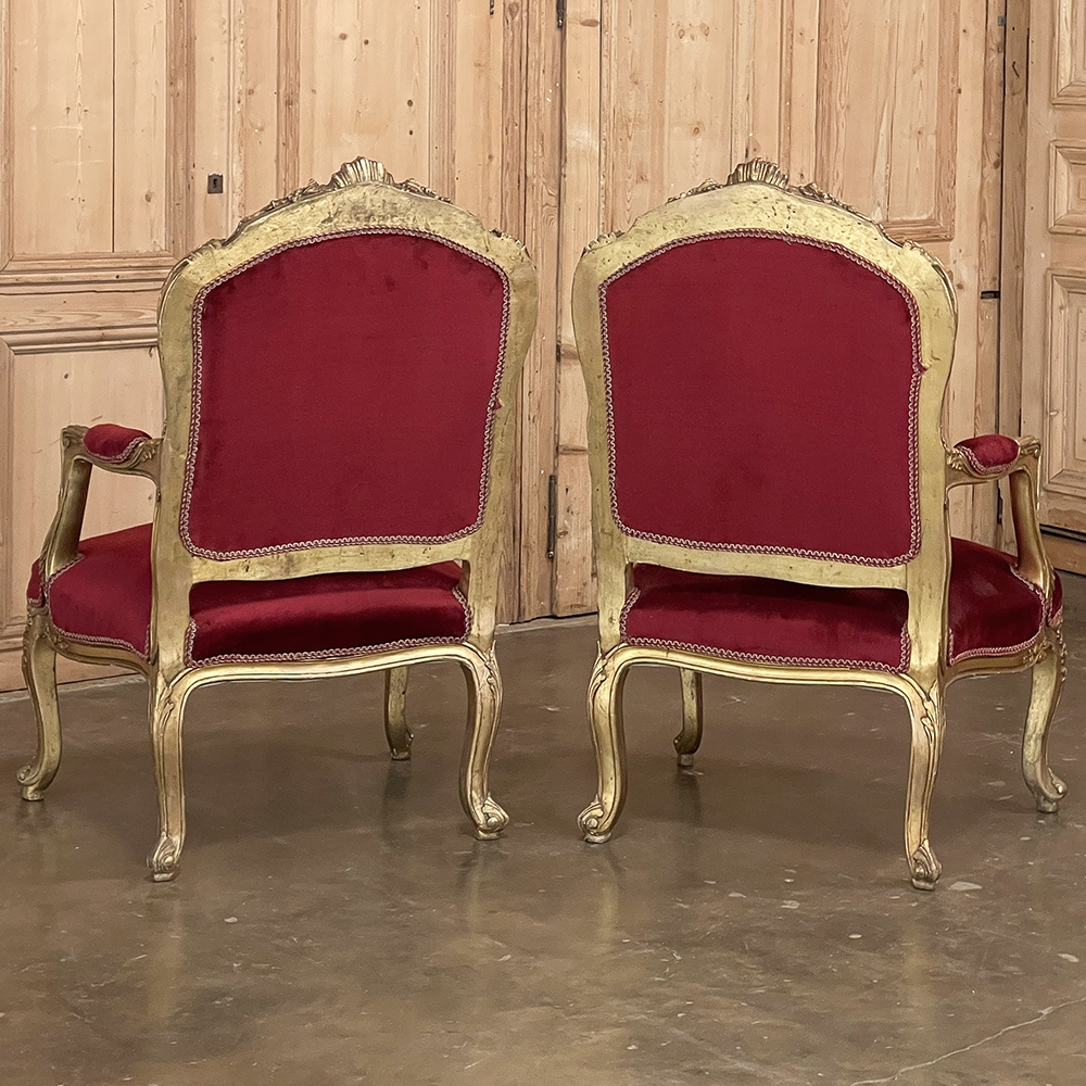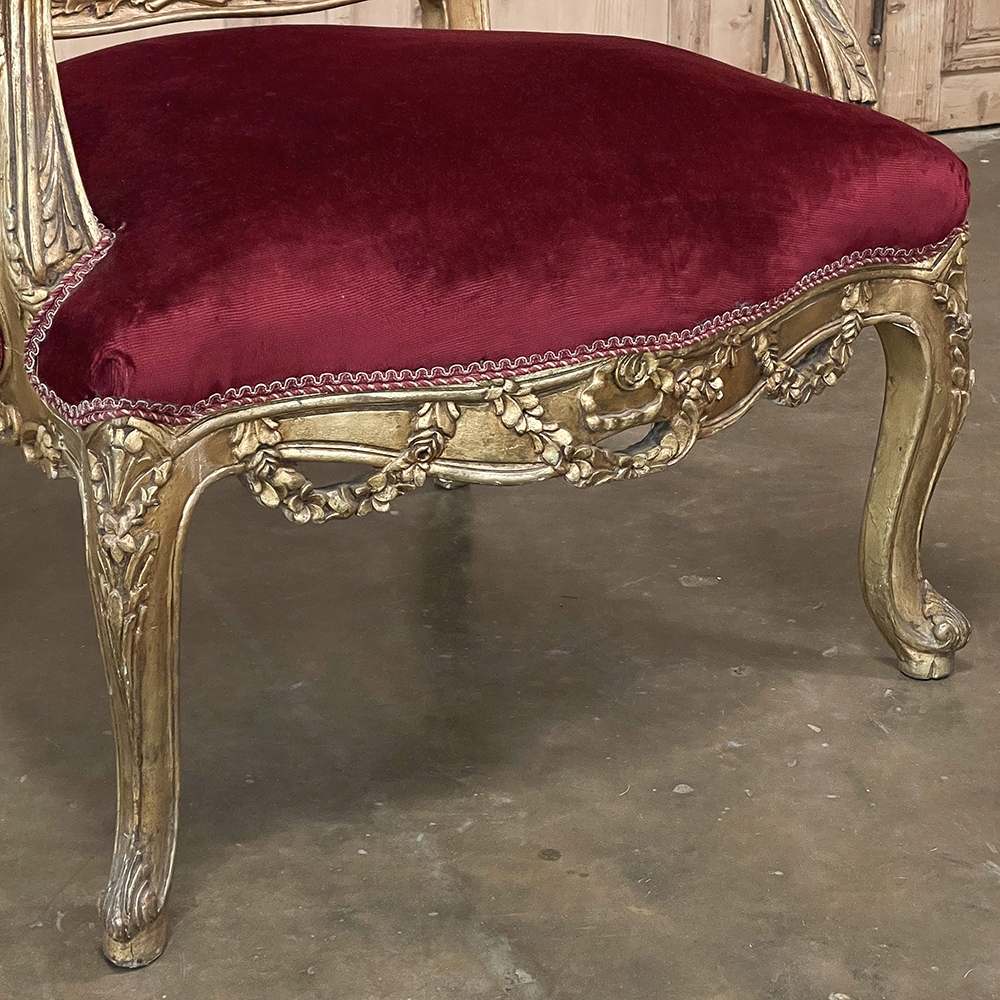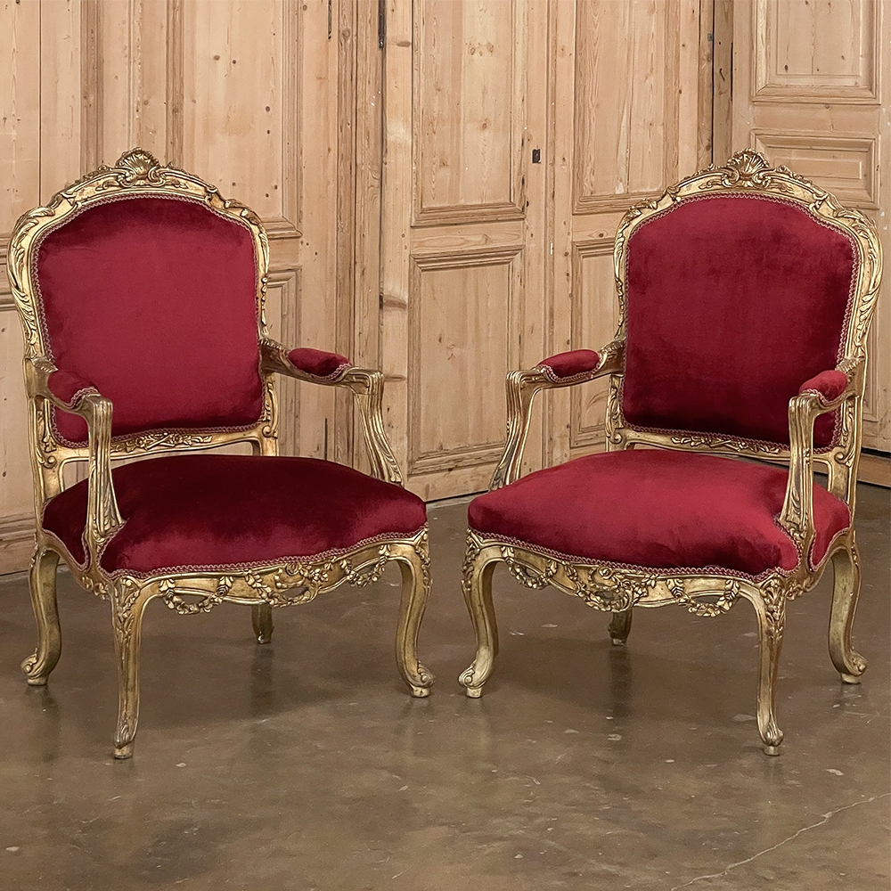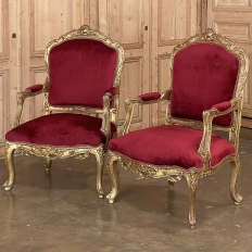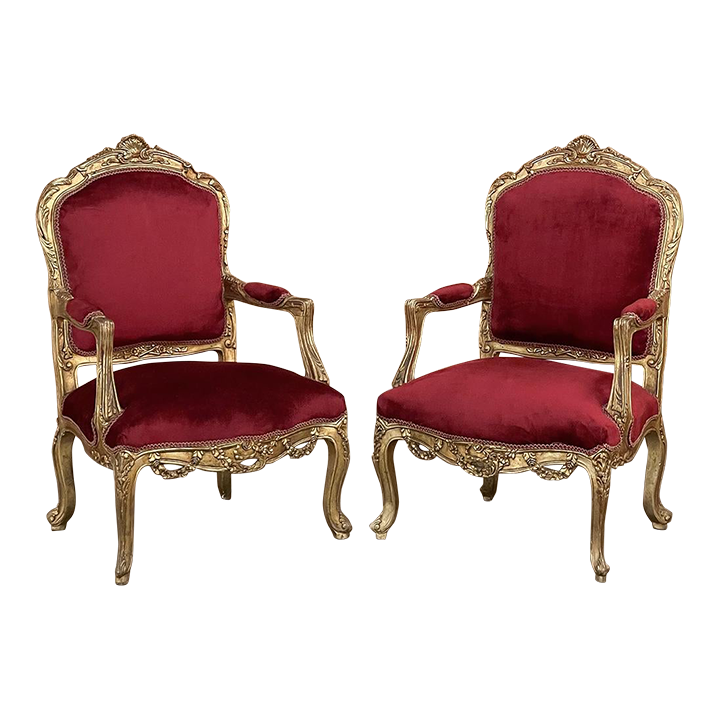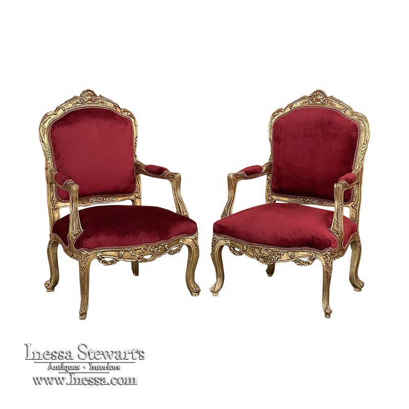 Pair Antique French Louis XIV Giltwood Armchairs ~ Fauteuils