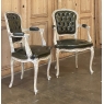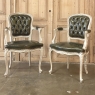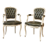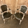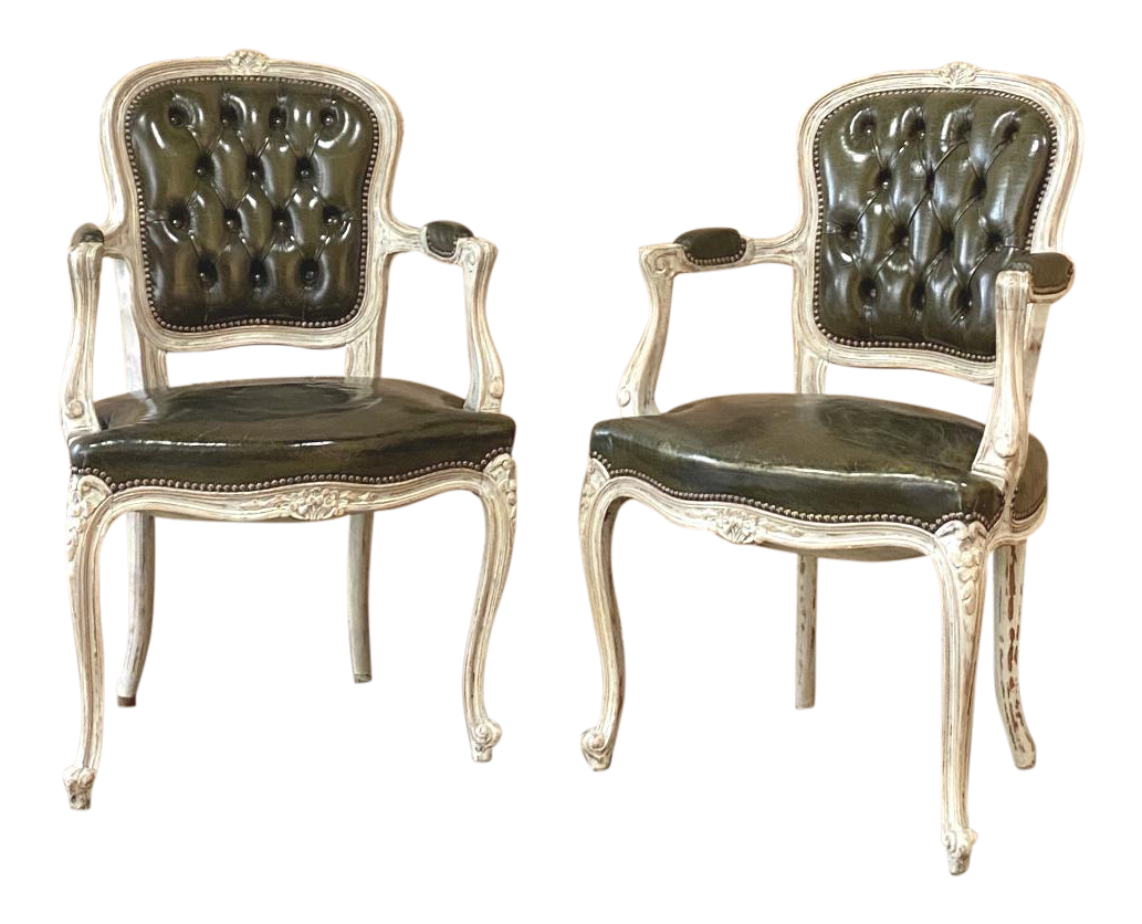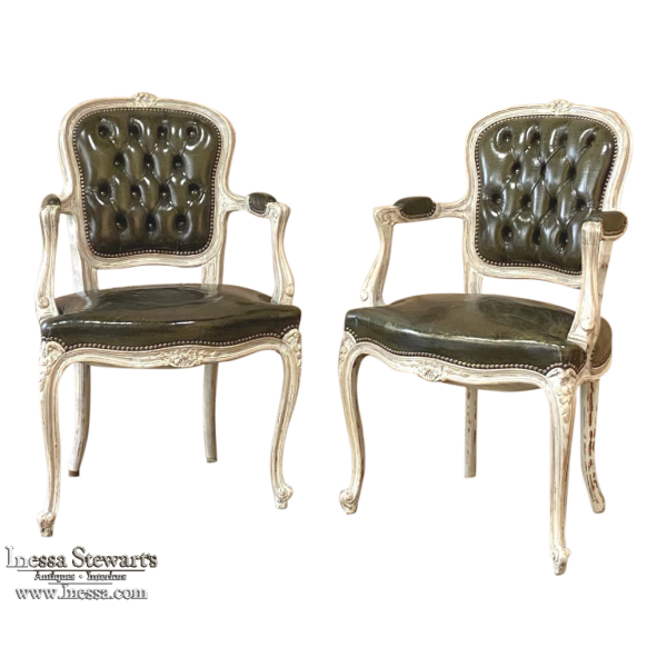 Pair Antique French Louis XV Painted Armchairs with Leather