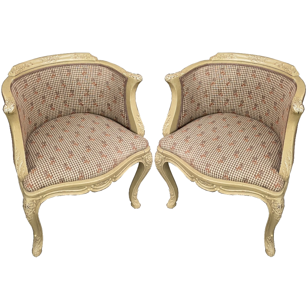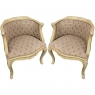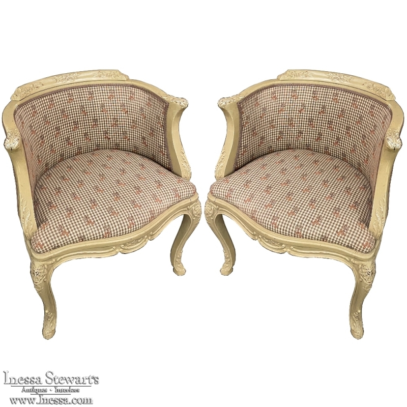 Pair Antique French Louis XV Painted Bergeres ~ Armchairs