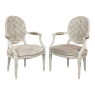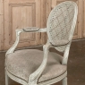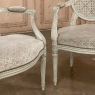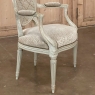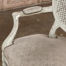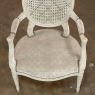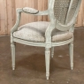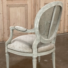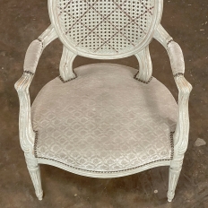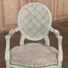 Pair Antique French Louis XVI Painted Armchairs with Cane and Fabric