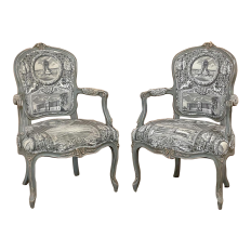 Pair Antique French Painted Louis XV Armchairs ~ Fauteuils
