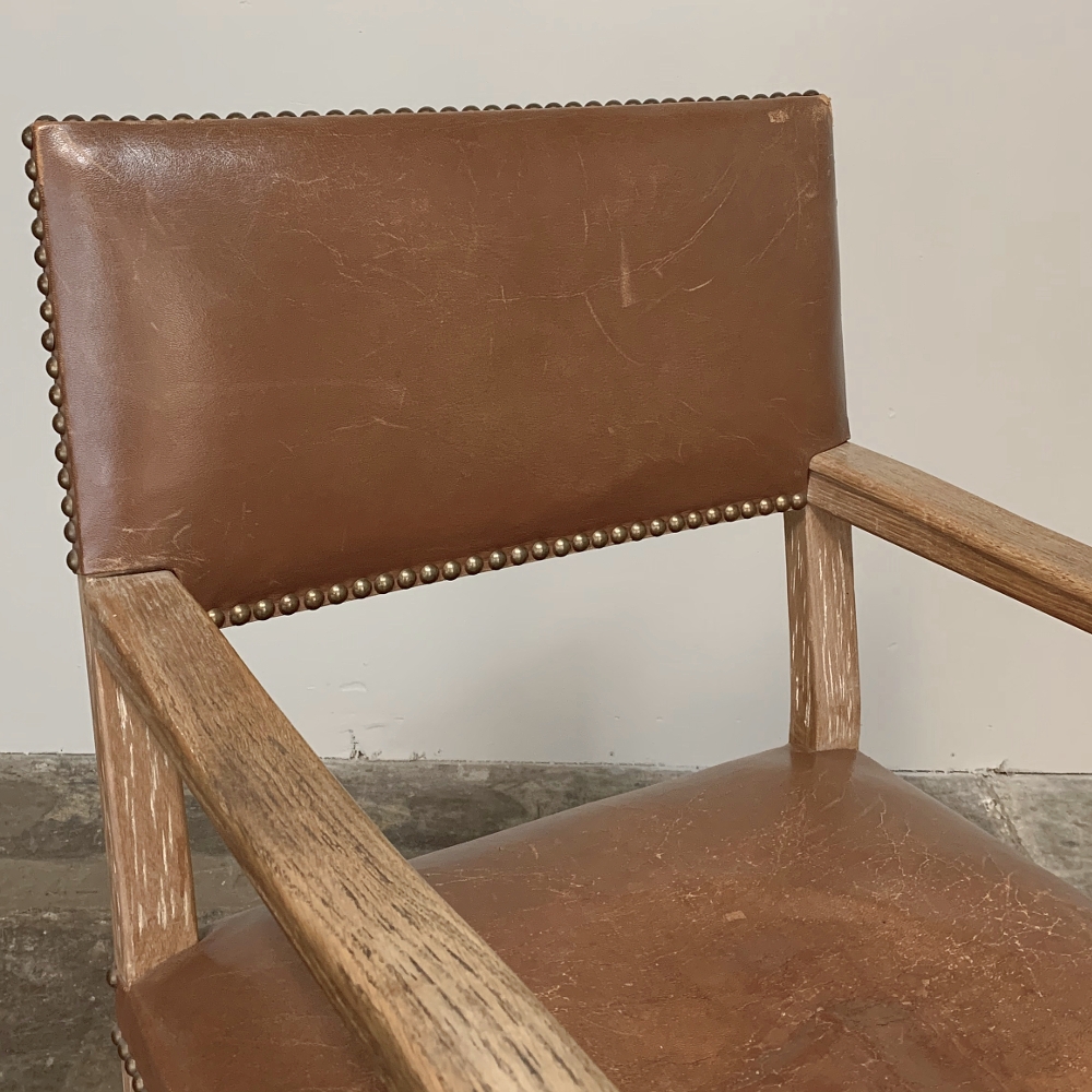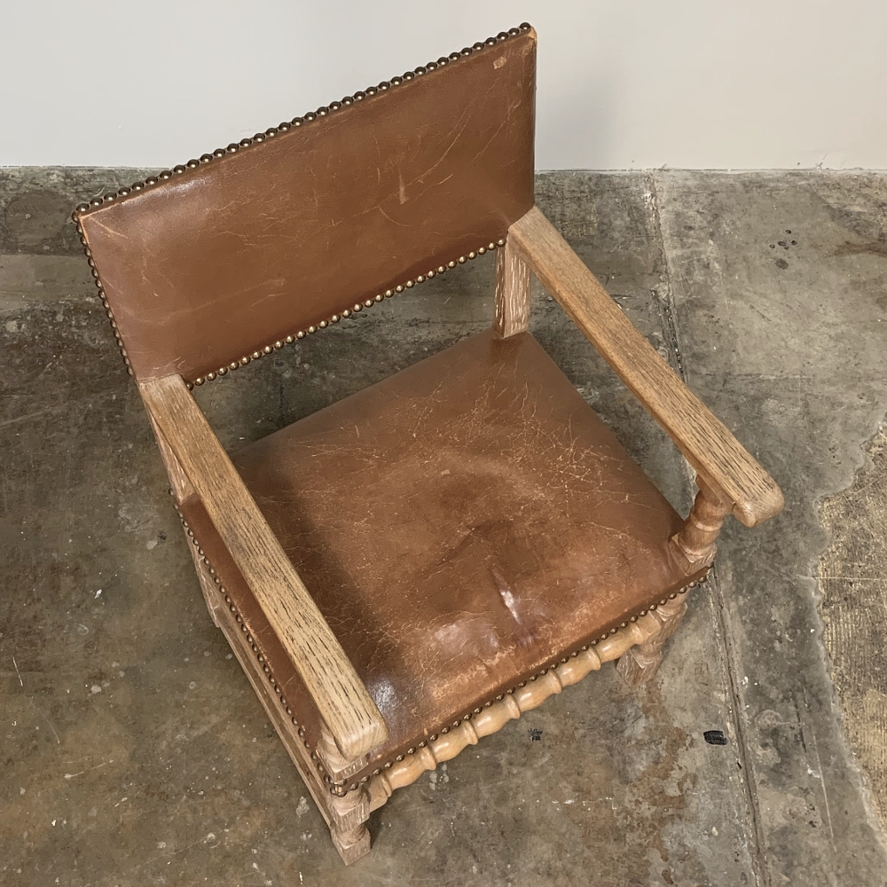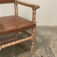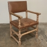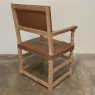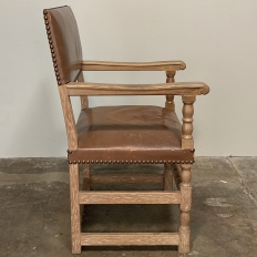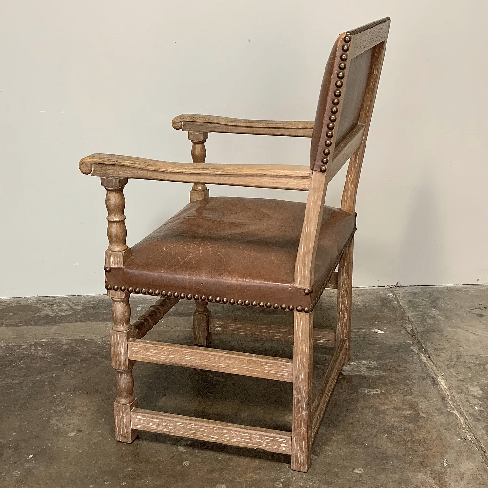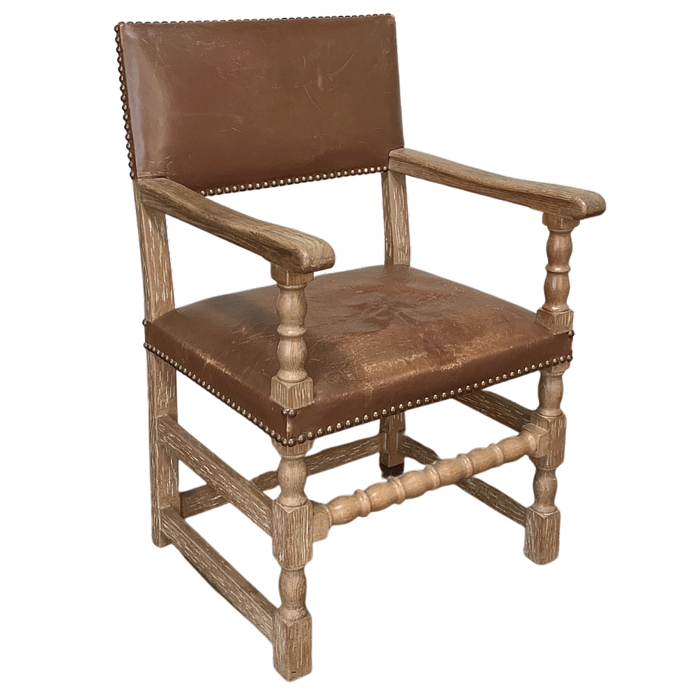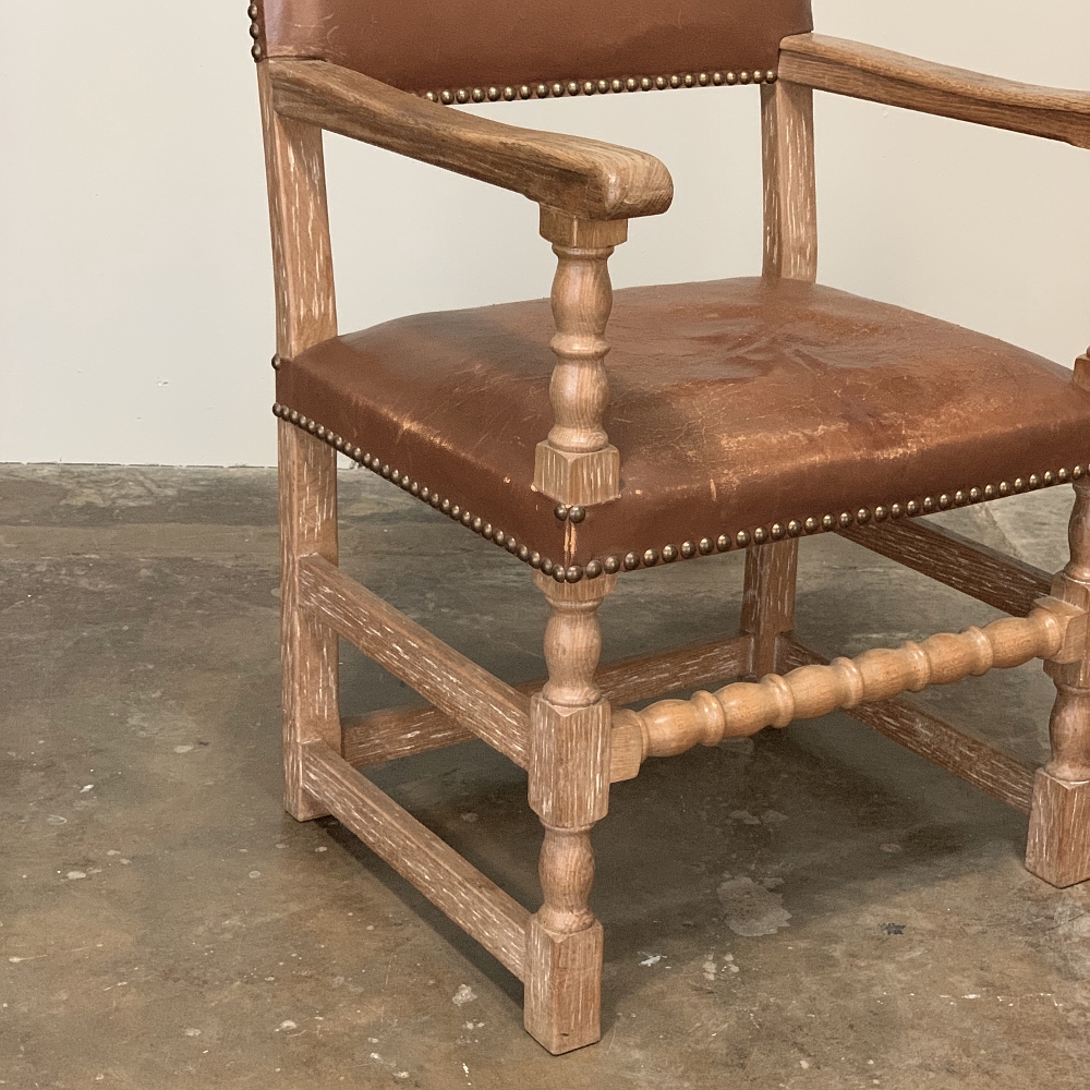 Mid-Century Rustic Country French Ceruse Finish Armchair with Leather