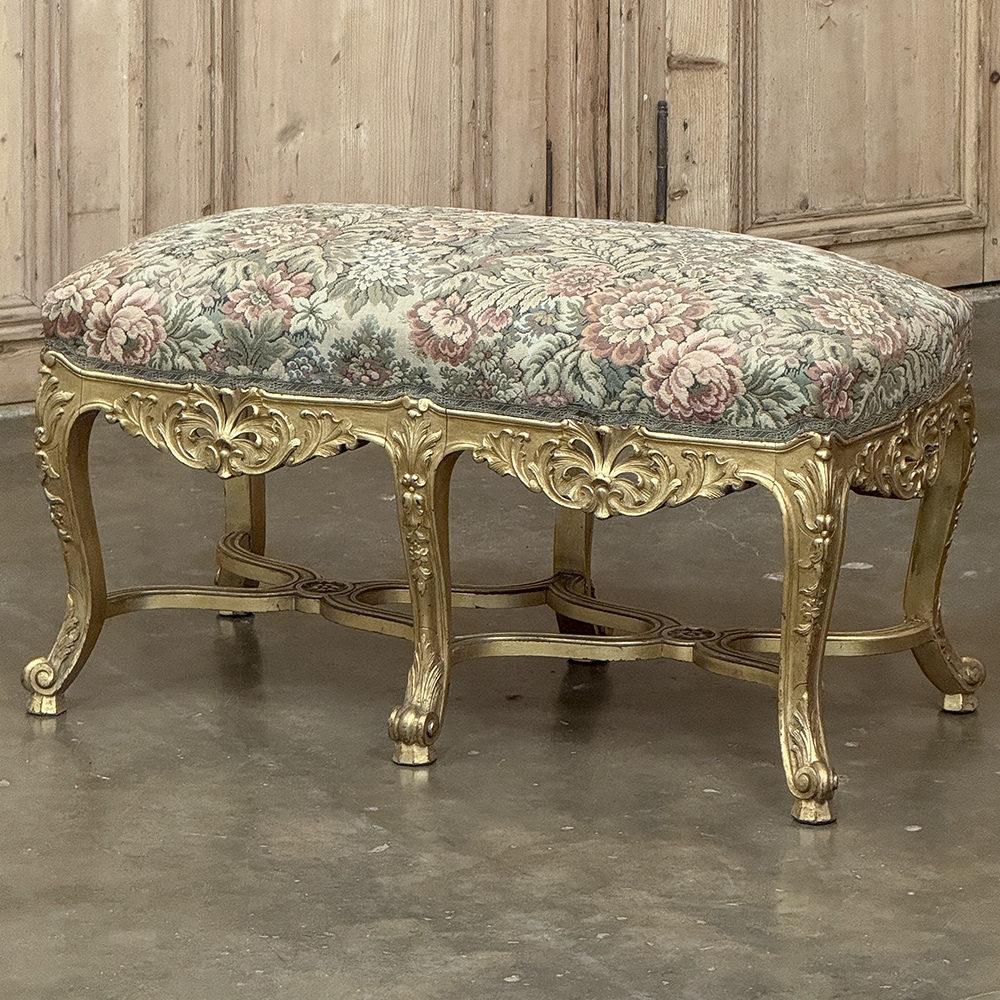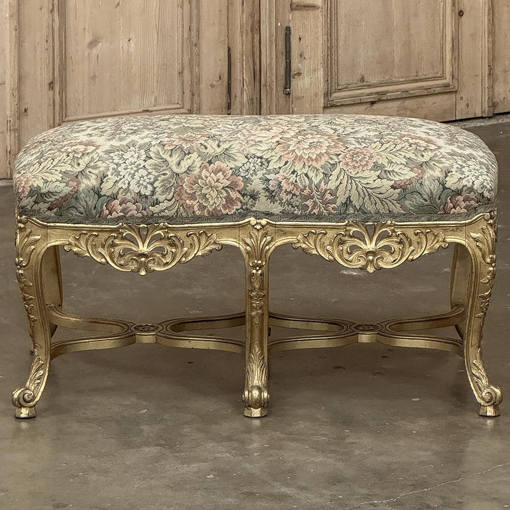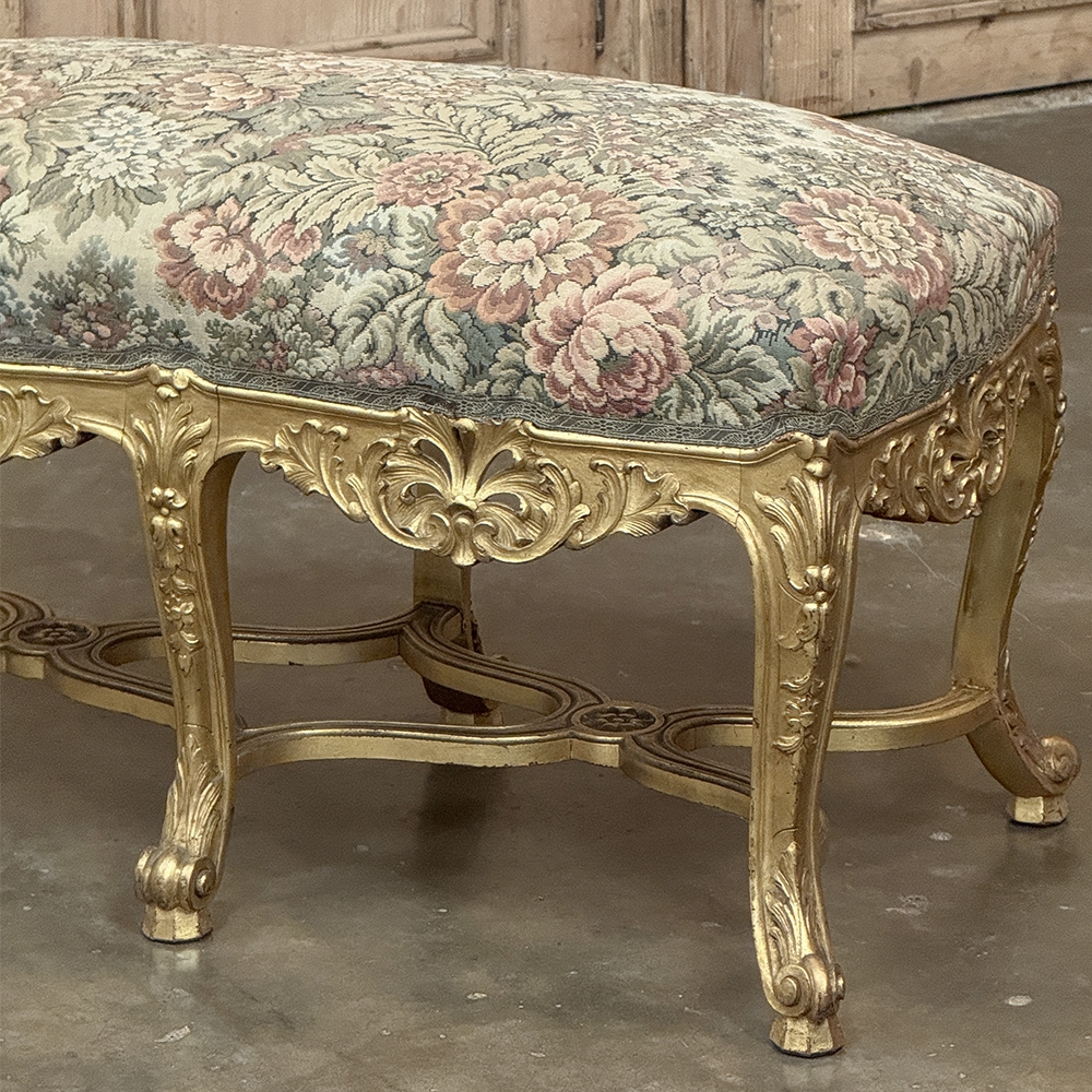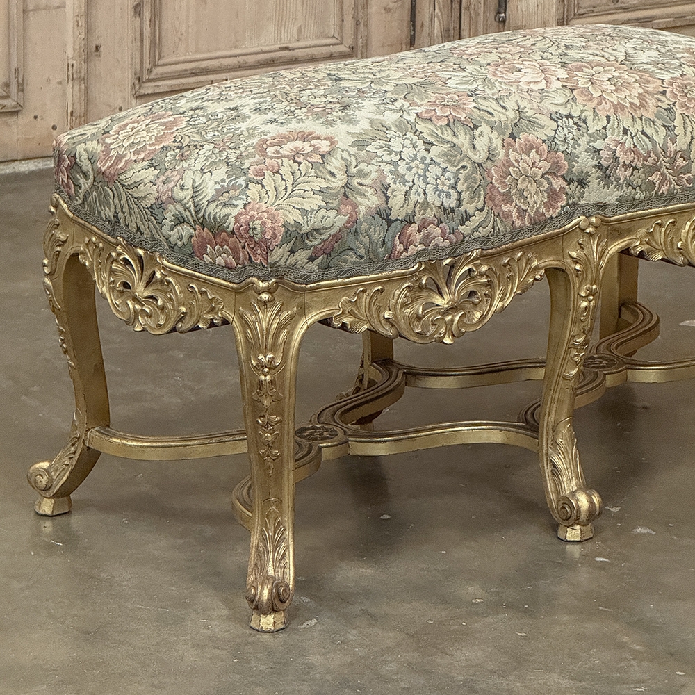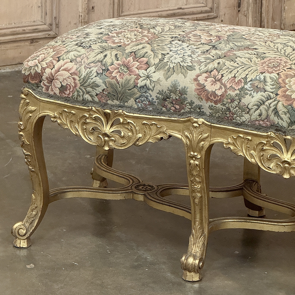 19th Century French Louis XIV Giltwood Vanity Bench with Tapestry
