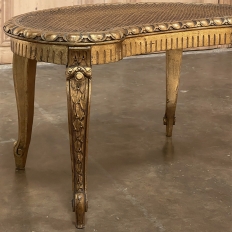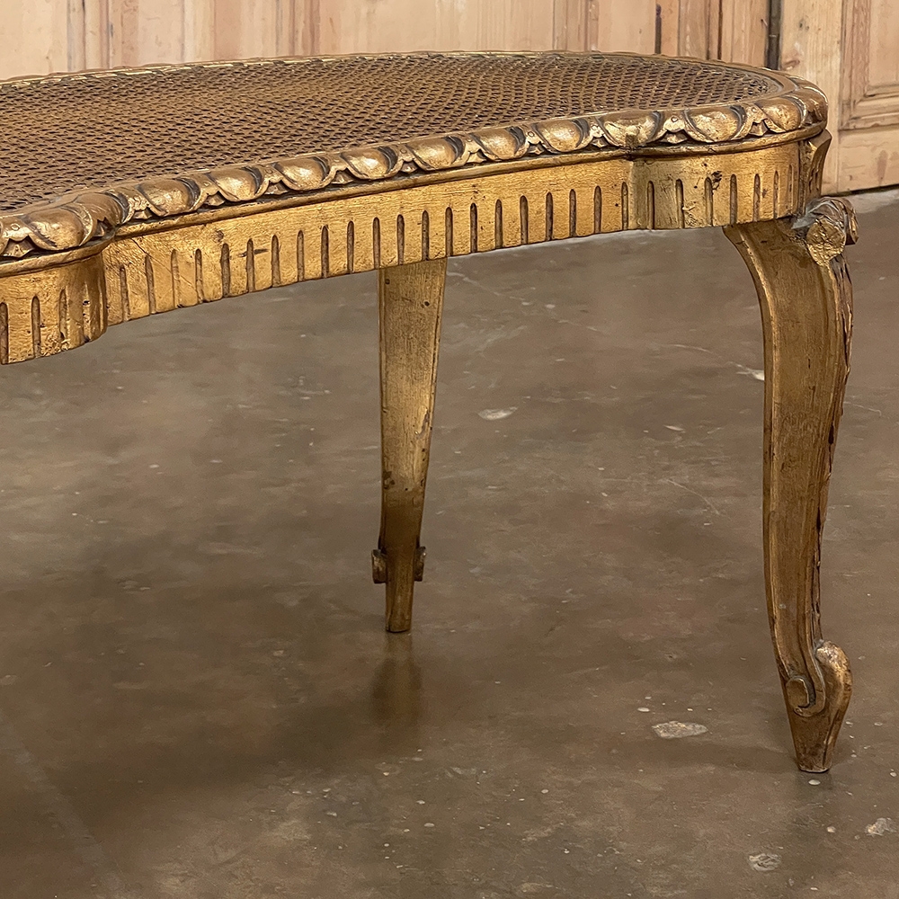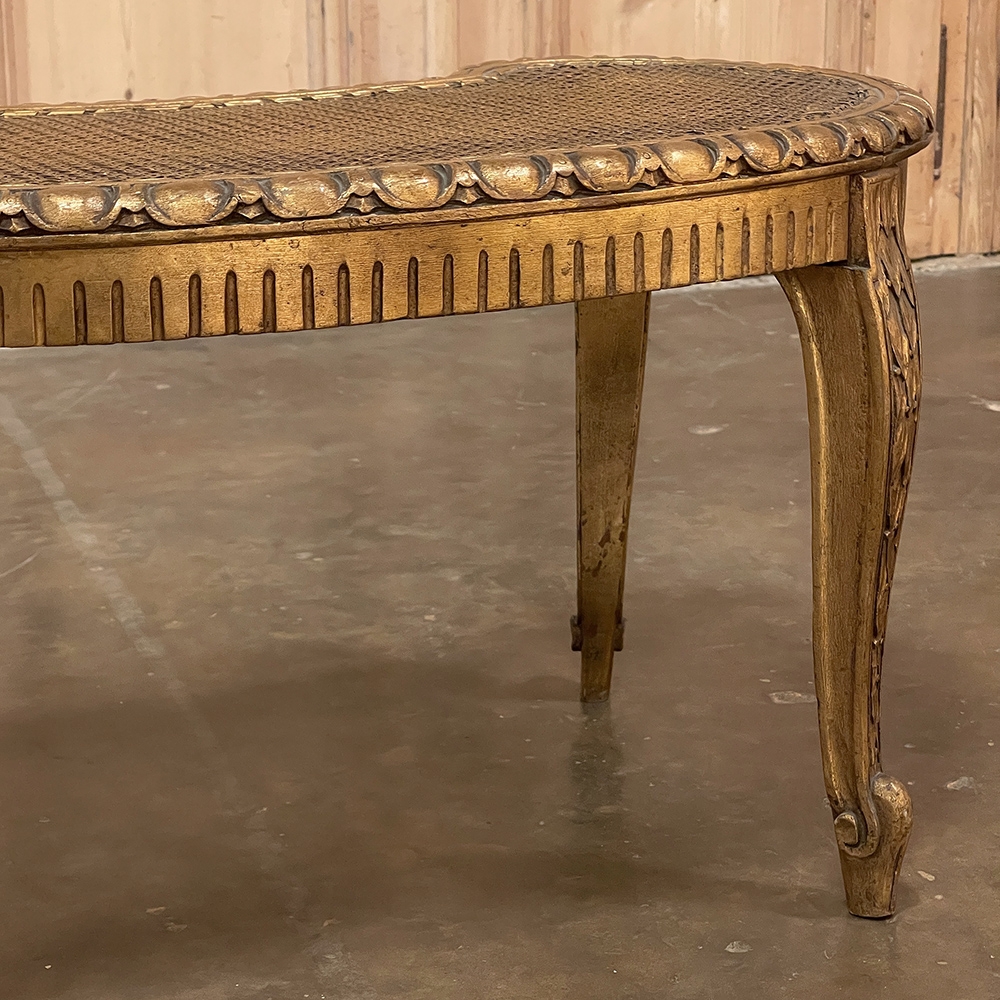 Antique Italian Neoclassical Giltwood & Caned Vanity Bench