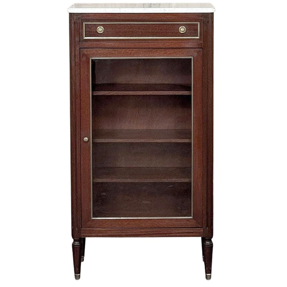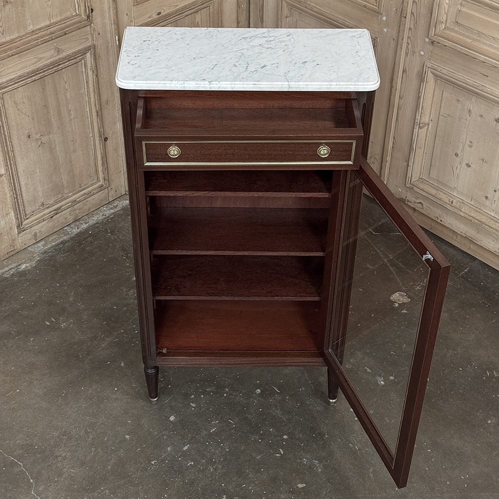 Antique Directoire Style Mahogany Petite Vitrine with Carrara Marble