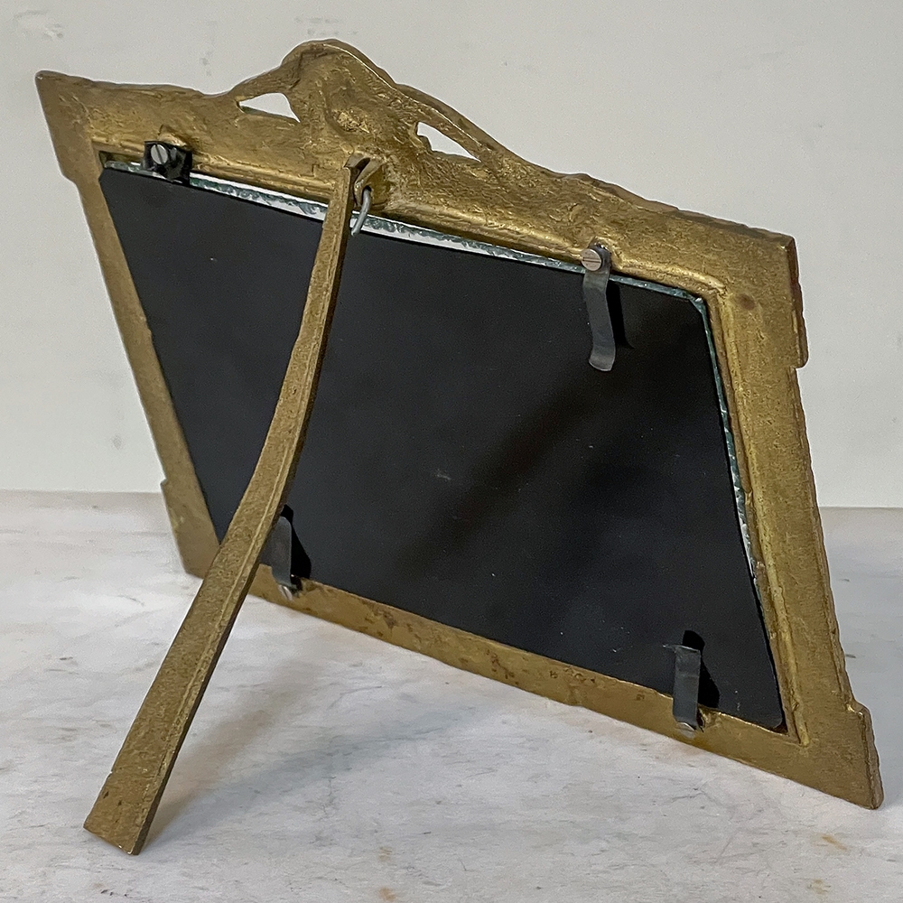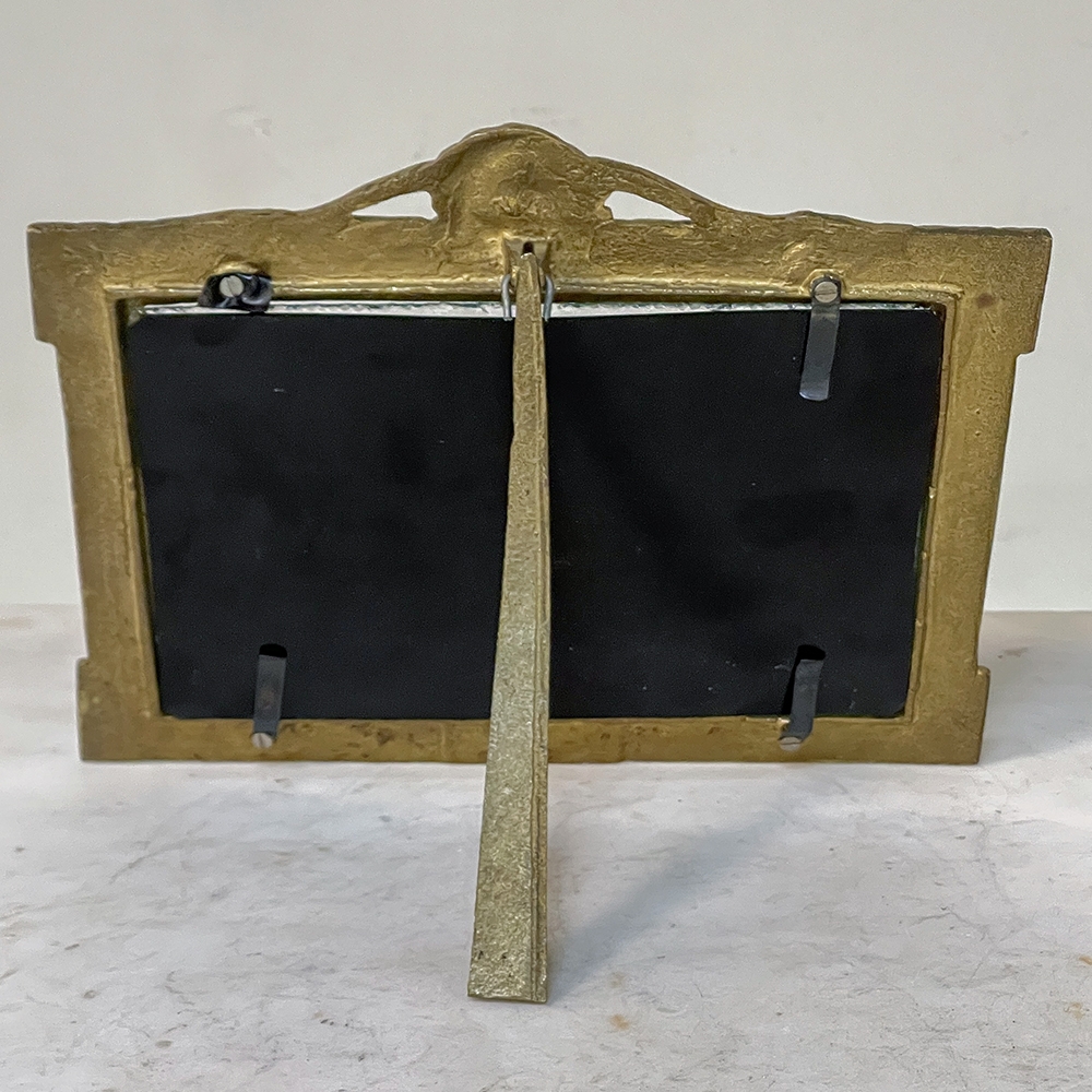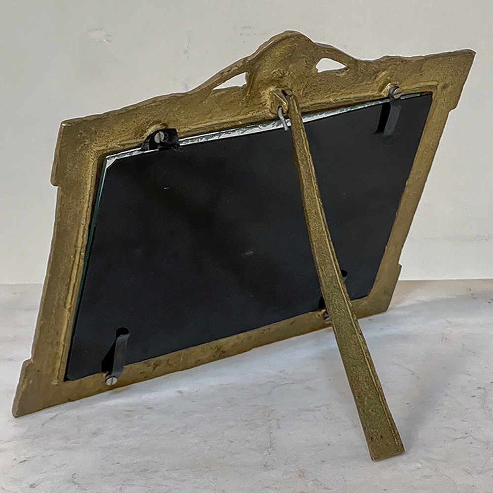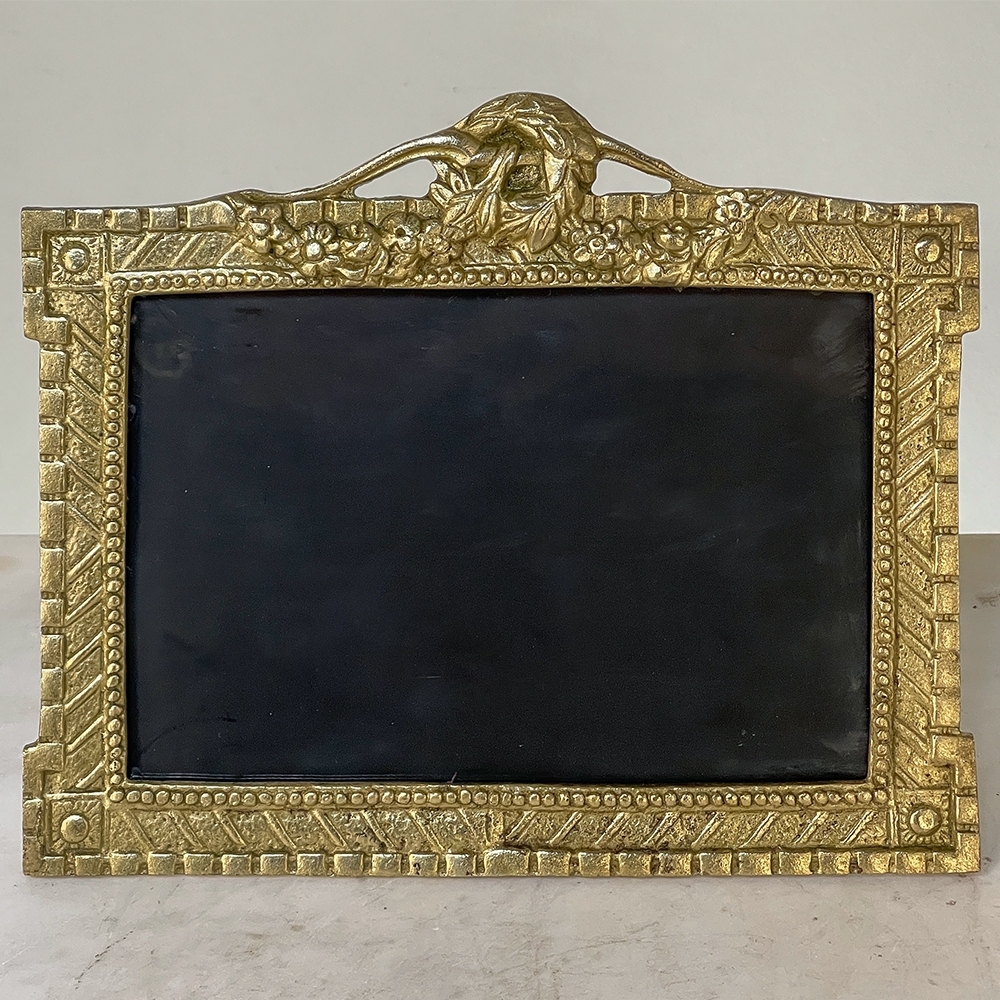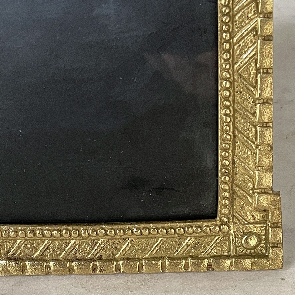Antique French Louis XVI Cast Brass Picture Frame will make a unique way to display your cherished photograph or miniature, all with stylistic flair, of course! Frame is solid brass, with a solid brass stand that hinges in the back, so it could be hung on the wall but is more likely used on a desk, counter or display surface.