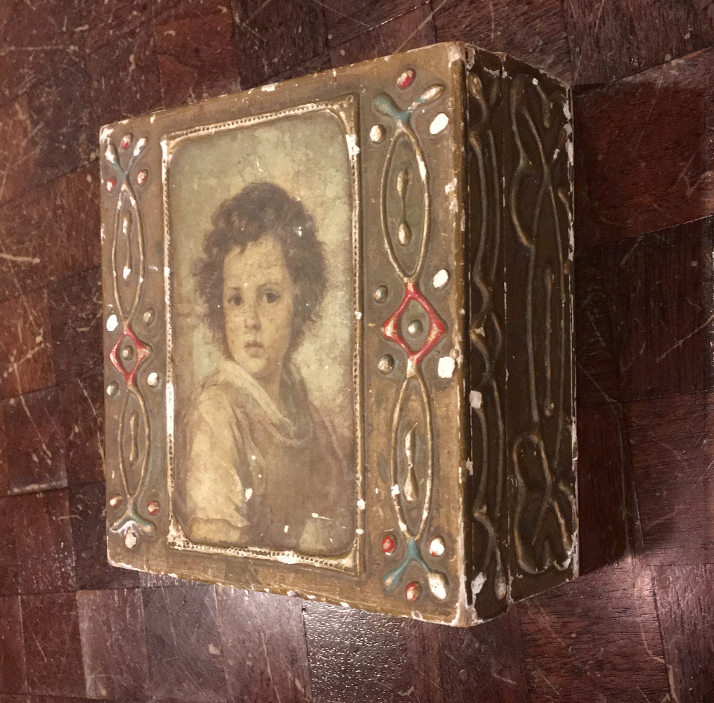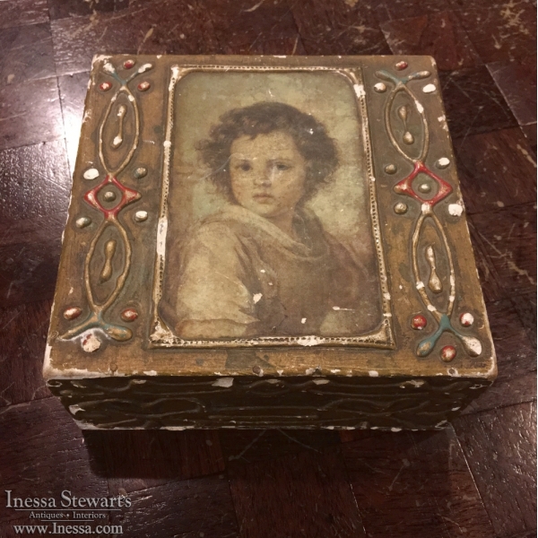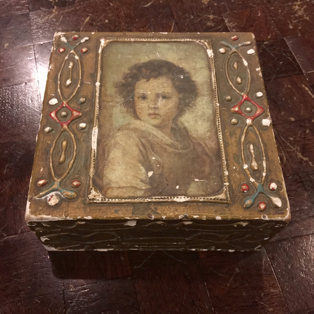 SaleAntique Florentine Box is perfect for jewelry, desktop items, or what-nots. Hand-painted on wood.
