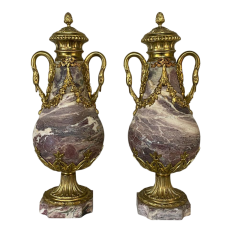Pair 19th Century French Louis XVI Marble & Bronze Cassolettes