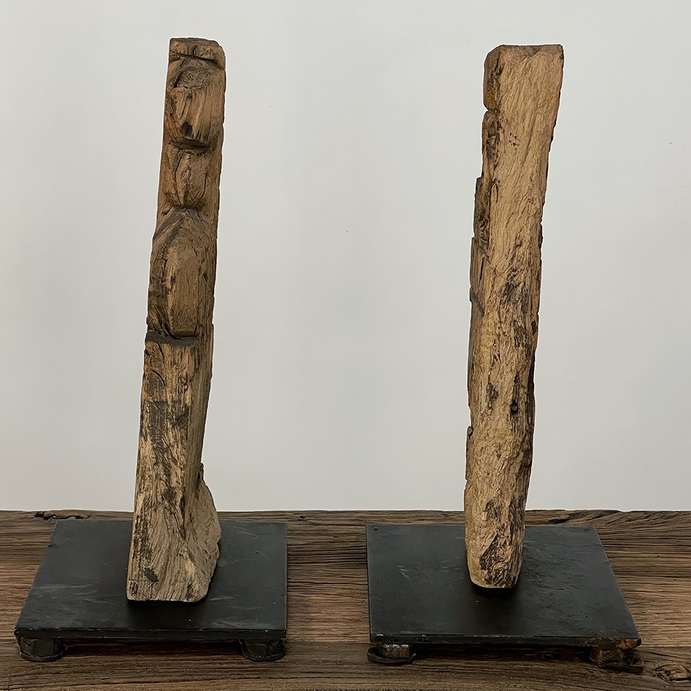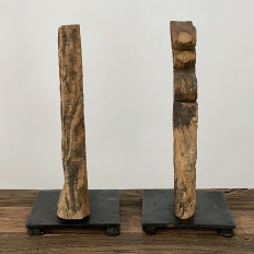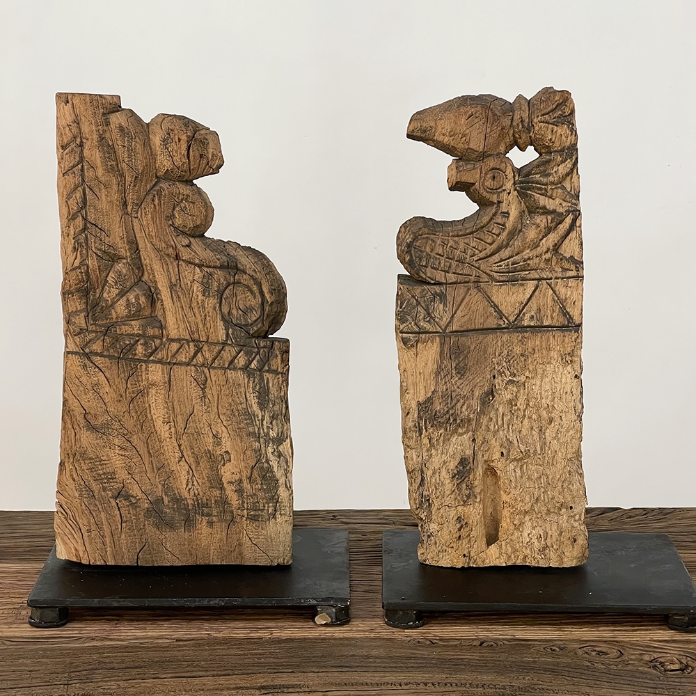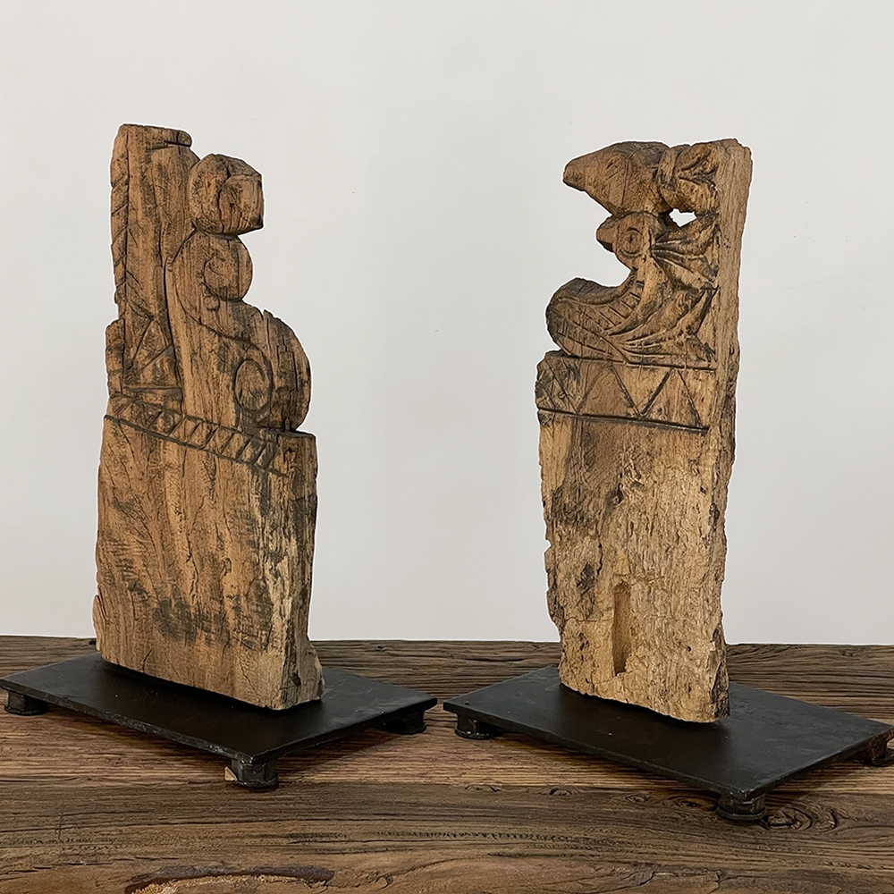 SalePair Antique Asian Architectural Artifacts on Iron Bases ~ Bookends will make excellent decorative accents, especially for the library! Old, weathered wood was hand-carved at least 200 years ago and just recently mounted to the footed iron plate bases to create the pair.