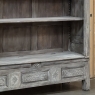 18th Century French Country Louis XIV Open Whitewashed Bookcase ~ Bibliotheque is a stunning example of the rural artisans mastery of cabinetmaking! Crafted from dense, old-growth oak using time-honored traditional methods like pegged mortise & tenon joinery, it was constructed to literally last for centuries. The bold multi-tiered crown presides over a lavishly scrolled bonnet centered with a carved crown motif, which in turn presides over the opening that provides a framework for three spacious surfaces including two fully adjustable shelves. The bottom "shelf" is in reality a trunk lid that opens to reveal storage behind the substantial apron below distinguished by three intricately carved raised & recessed panels separated by rosettes. The architecture is otherwise rectilinear, including the sides enhanced by raised panels, two of which are scrolled for a magnificent presence no matter the angle of view. An extraordinary choice for the true connoisseur!