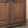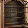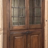 18th Century Rustic French Neoclassical Bookcase was meticulously hand-crafted from select, old growth French white oak to literally last for centuries! The elegant arched crown extends almost the width of the casework, and is boldly molded to create a proper bonnet for the entire piece. The upper doors are glazed with eight panes of hand-rolled glass set in a framework that follows the contours of the arched bonnet above, and are mounted on outboard steel barrel hinges to allow the doors to swing as wide open as possible to facilitate easy access. The upper tier also sports three shelves for a total of four surfaces to give you lots of latitude for display. Note the hand-forged latch and lock mechanisms on the doors! The bottom tier encloses the lower space for discreet storage, and offers two surfaces. The sides and base are very tailored, giving the overall impression of neoclassical architectural influence in the design. Shallow at less than a foot and a half deep, it will make a minimal footprint on your room while providing abundant display and storage opportunity!