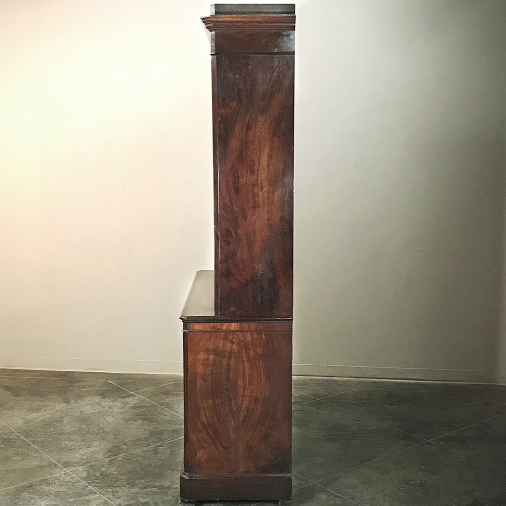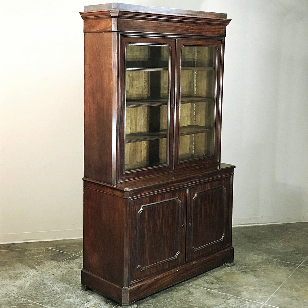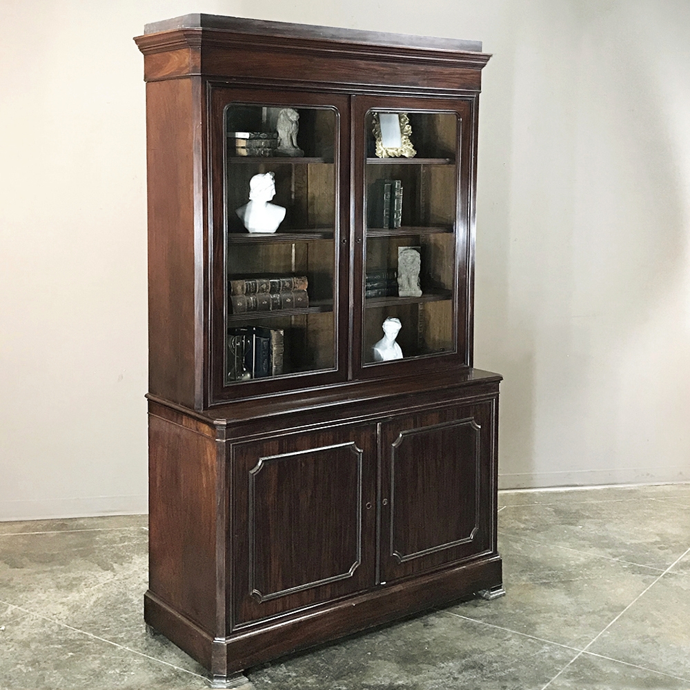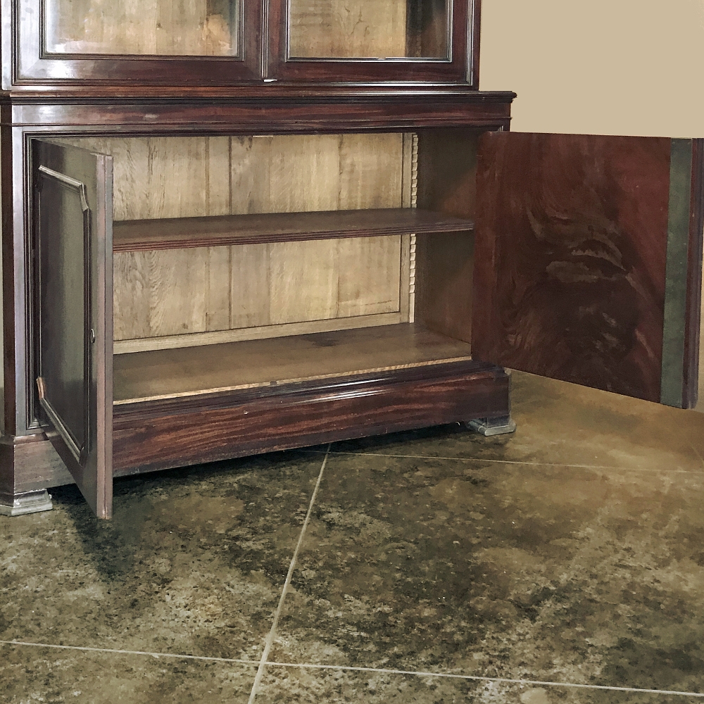 SaleThis handsome 19th Century French Mahogany Louis Philippe Bookcase features glazed display above and cabinet storage below, all rendered from exotic imported mahogany which was considered the premier wood during the middle of 19th century, painstakingly imported from the Americas to France by sailing vessel. The clean lines of the Louis Philippe style stand out even more today, blending seamlessly with modern interiors, yet provide no competition for the sheer natural beauty of gorgeous mahogany, exuding its refined age with the patina acquired over the course of a century and a half!