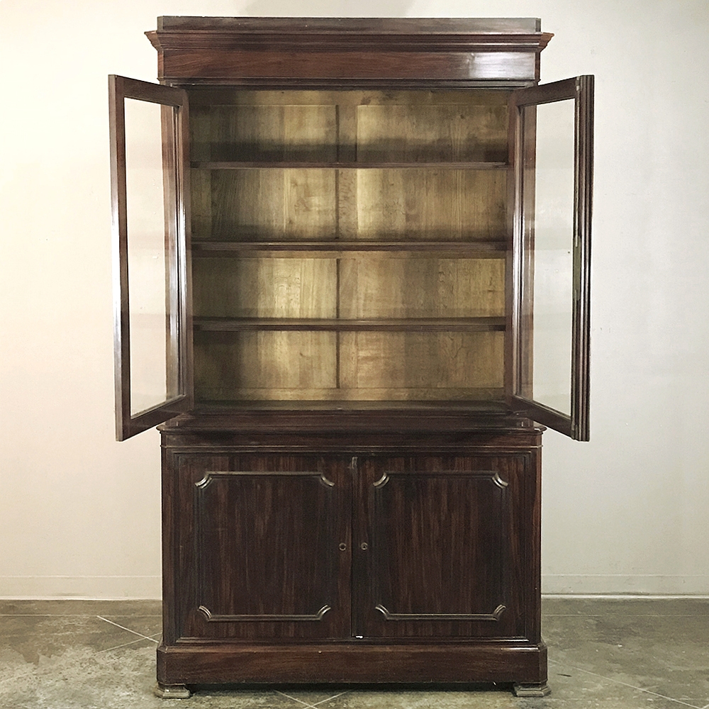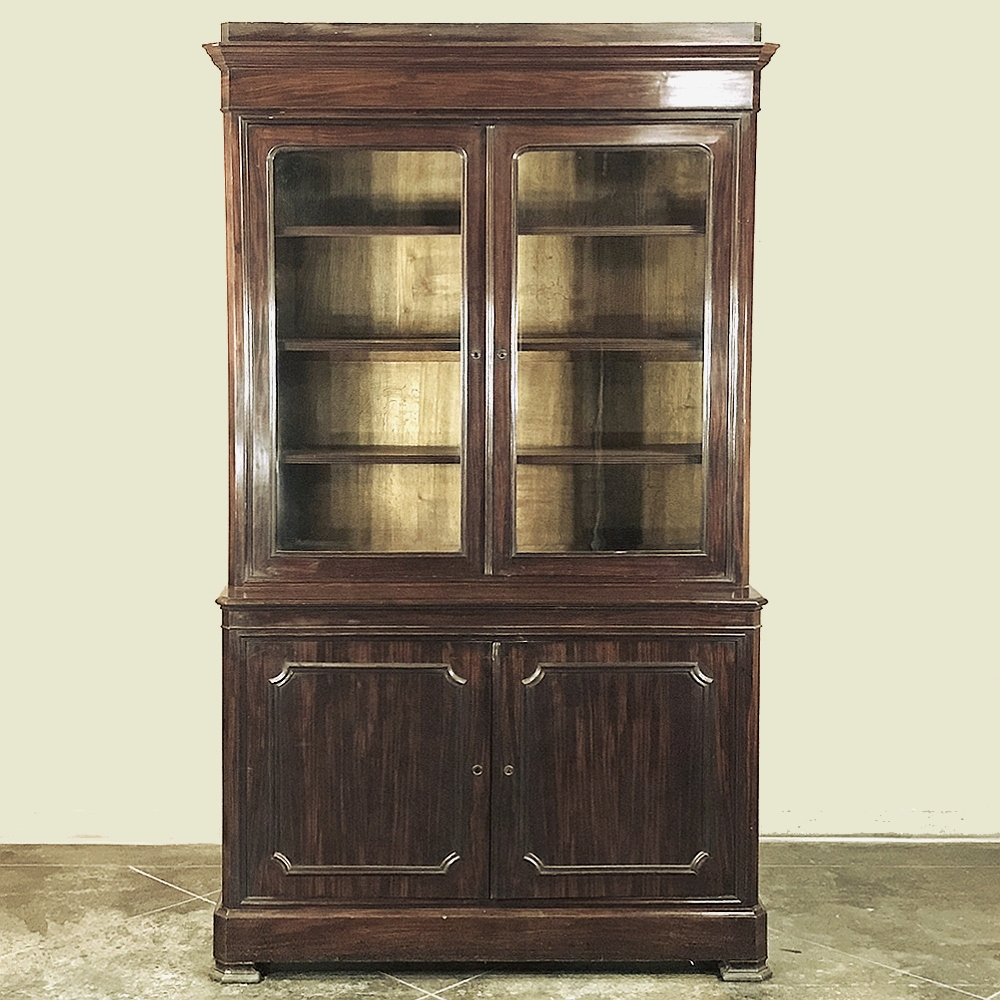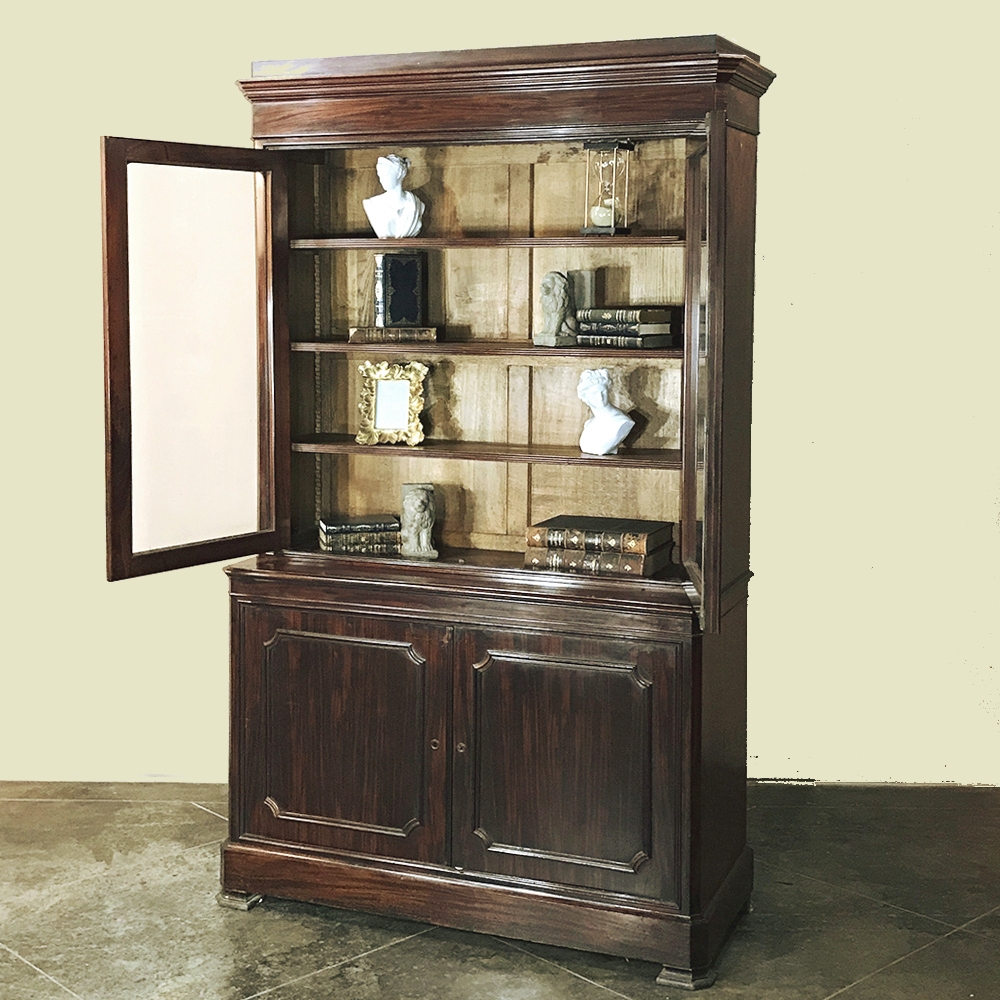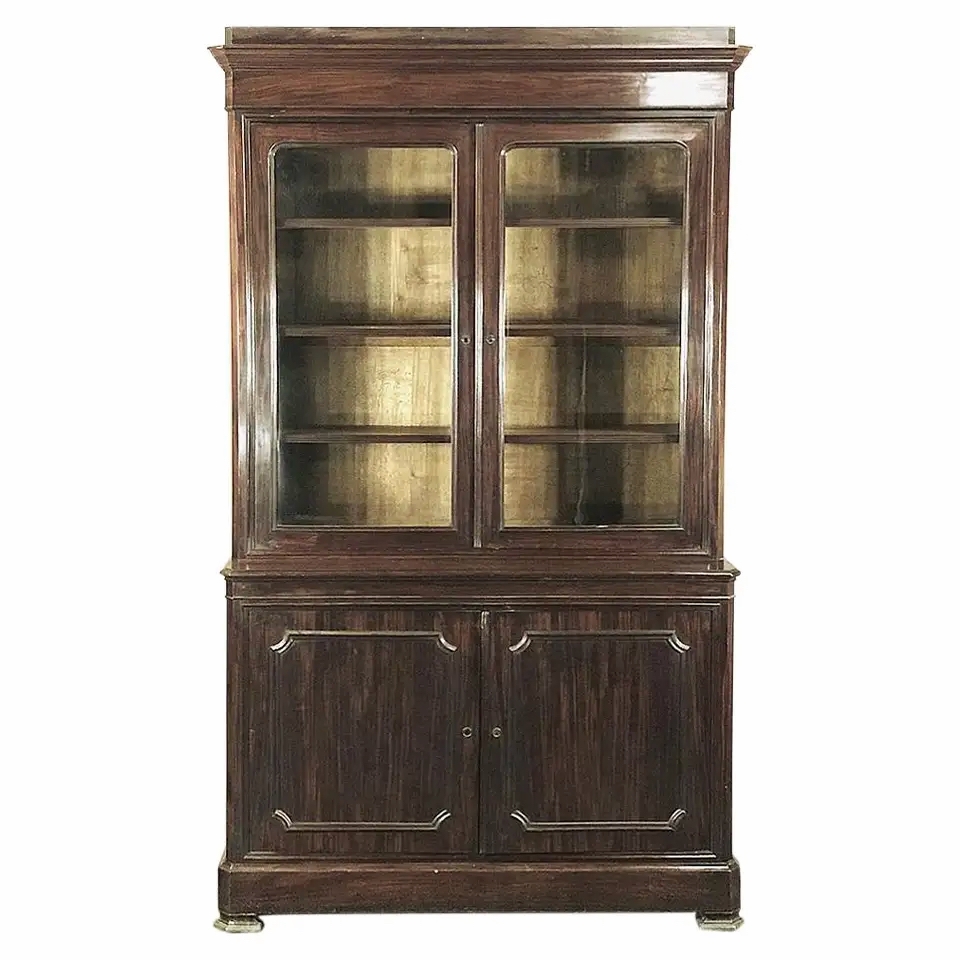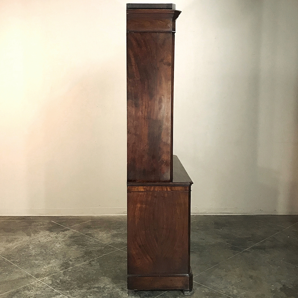 SaleThis handsome 19th Century French Mahogany Louis Philippe Bookcase features glazed display above and cabinet storage below, all rendered from exotic imported mahogany which was considered the premier wood during the middle of 19th century, painstakingly imported from the Americas to France by sailing vessel. The clean lines of the Louis Philippe style stand out even more today, blending seamlessly with modern interiors, yet provide no competition for the sheer natural beauty of gorgeous mahogany, exuding its refined age with the patina acquired over the course of a century and a half!
