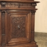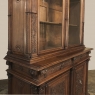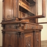 19th Century Grand French Renaissance Walnut Bookcase is a study in excellence of materials, design, and craftsmanship! Rendered from sumptuous select French walnut, it features a rectilinear, neoclassical architecture that has been combined with classical appointments such as scrolled corbels and Greek coin motifs, as well as Doric capitals and fluted pilasters. However, the Renaissance design influence is also expressed in the center carving under the bumped-up crown molding, the carvings under the cornerpost fluting, across the drawer tier and lastly the amazingly complex carved detail of the cabinet doors below, centered with full relief lions' heads. Even the sides have received the sculptor's attentions with rosettes, demilune shells, and half-column style back cornerposts that mirror the design of the cornerposts in front. The top tier features glazed doors for display, while the bottom tier is for discreet storage. One would have to spend a bit of time discovering all the remaining details that have been lavished on this work of the cabinetmaker's art. Suffice to say, your books, collection, or family mementos will be well served in this spectacular casework, with copious storage as an added convenience.