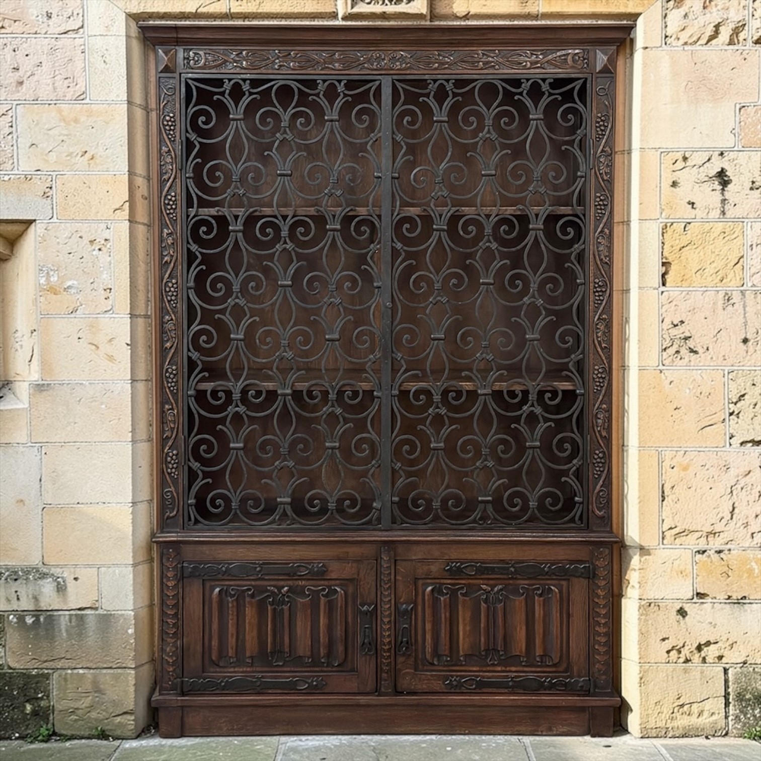 Antique French Gothic & Wrought Iron Bookcase ~ Bibliotheque from Toulouse