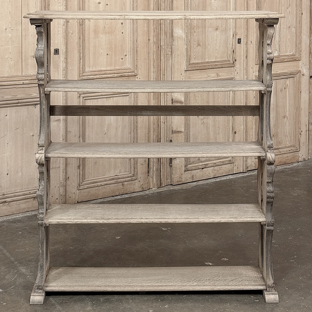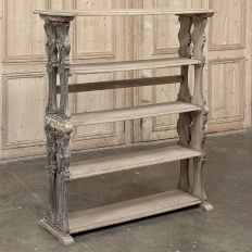 Antique French Renaissance Open Bookcase in Stripped Oak