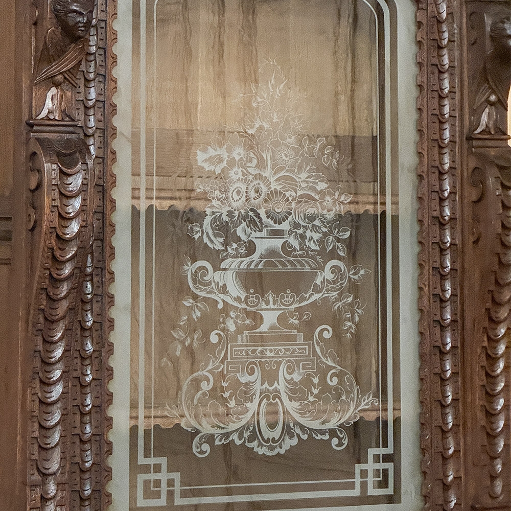 Pair 19th Century Flemish Bookcases with Etched Glass