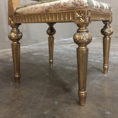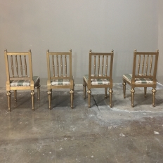 SaleThis Set of Four 19th Century Swedish Louis XVI Gilded Chairs is a classic example of the elegance of the Belle Epoch in Europe! Beautifully hand-crafted in the neoclassic style, each has been hand-carved with egg & dart, lotus blossom and rosettes, with turned spindles on the seatback for lightweight strength and comfort. The gilded finish creates an opulent effect, as does the luxurious upholstery.