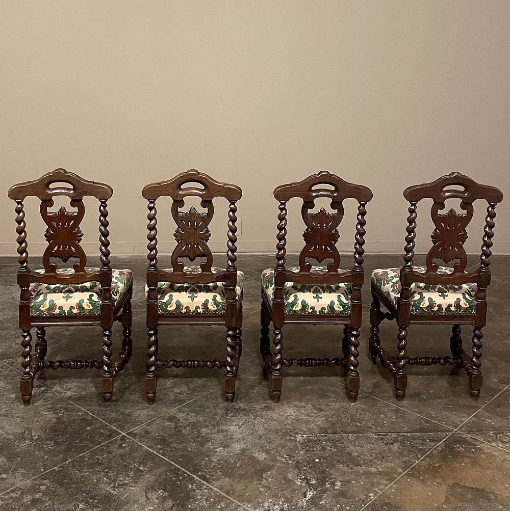 Set of Four 19th Century Renaissance Revival Louis XIII Style Barley Twist Side Chairs in Solid Oak