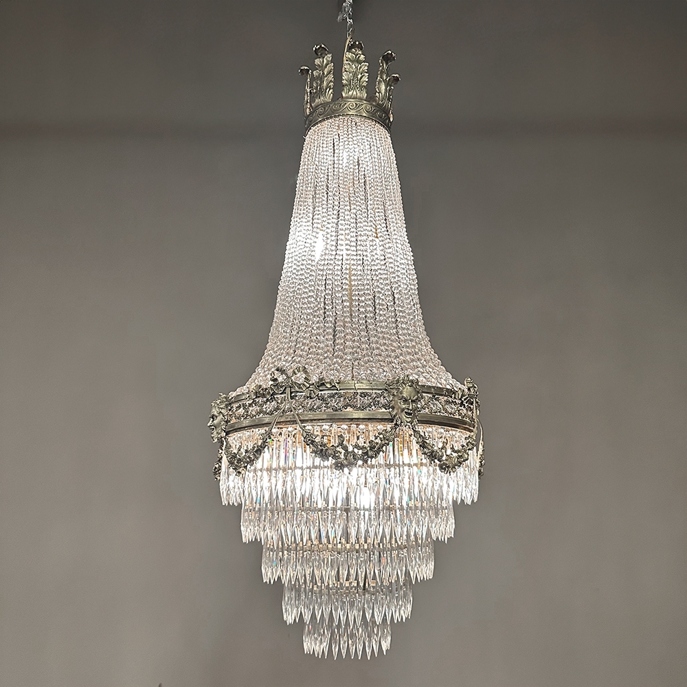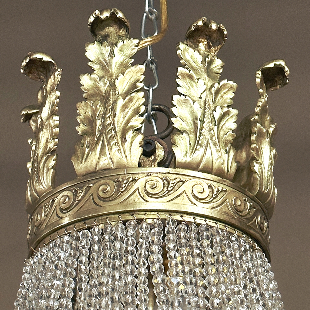 Antique French Neoclassical Sack of Pearls Bronze & Crystal Chandelier with Bacchus