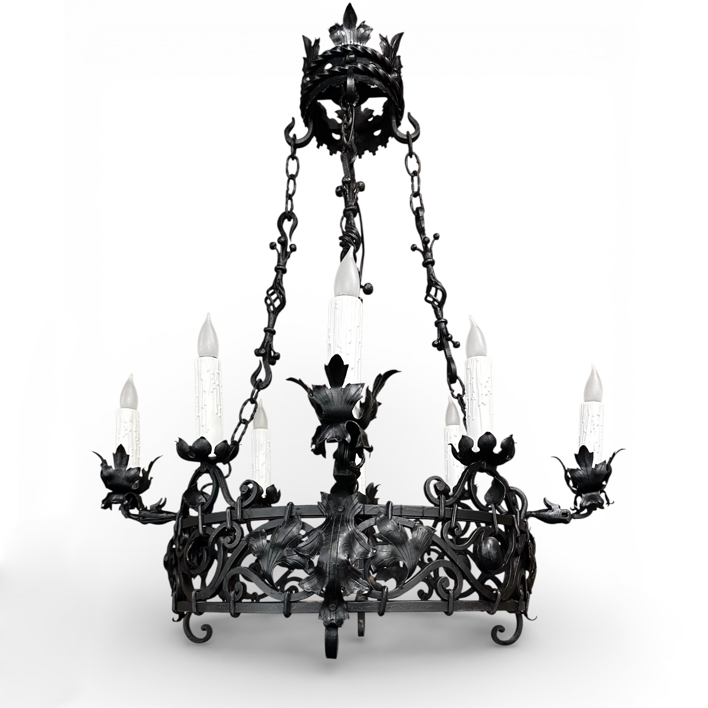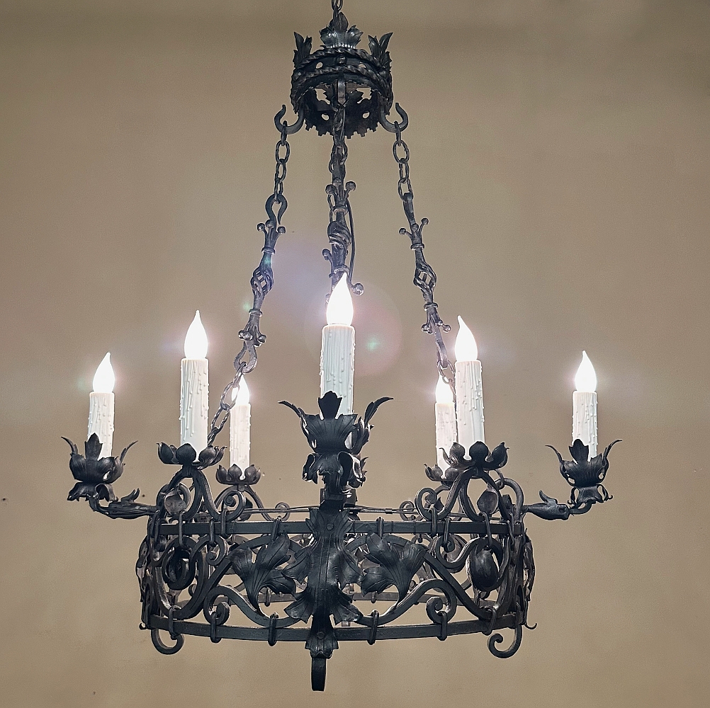 Antique Italian Hand-Forged Wrought Iron Chandelier