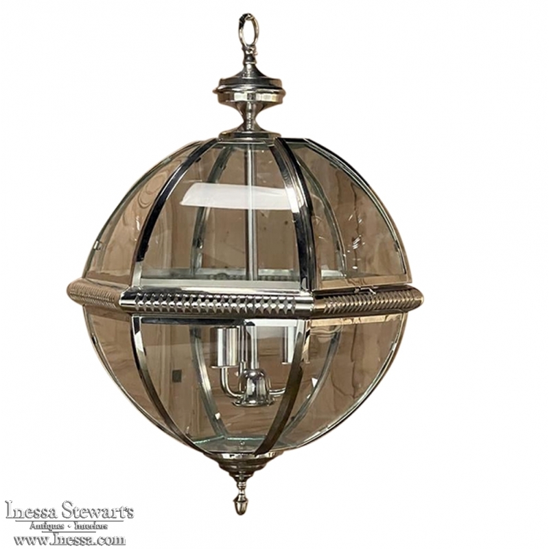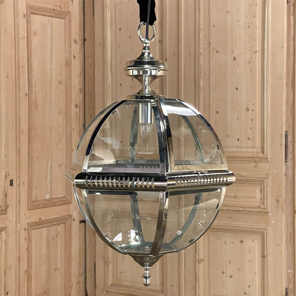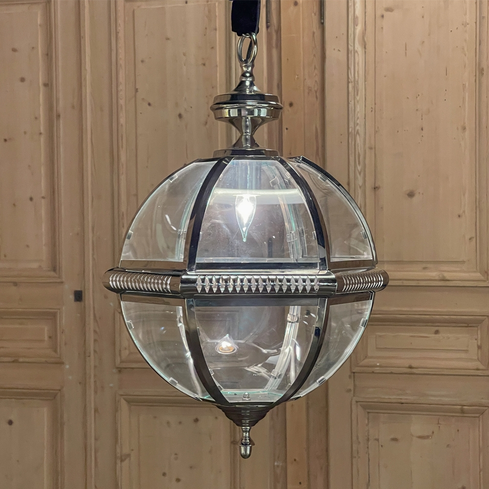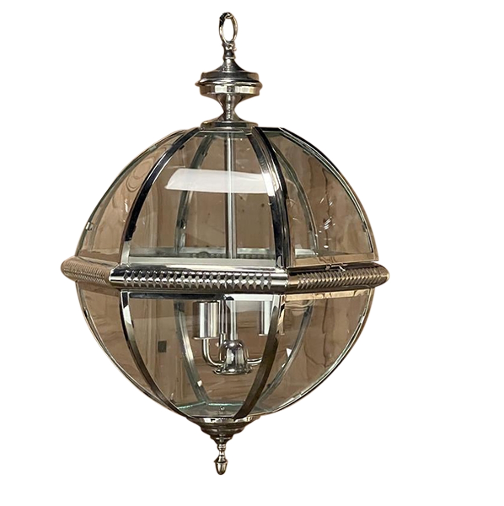 Mid-Century Nickel-Plated Orb Pendant Chandelier is beautifully crafted and glazed, and emanates light in all directions for a wonderful effect.