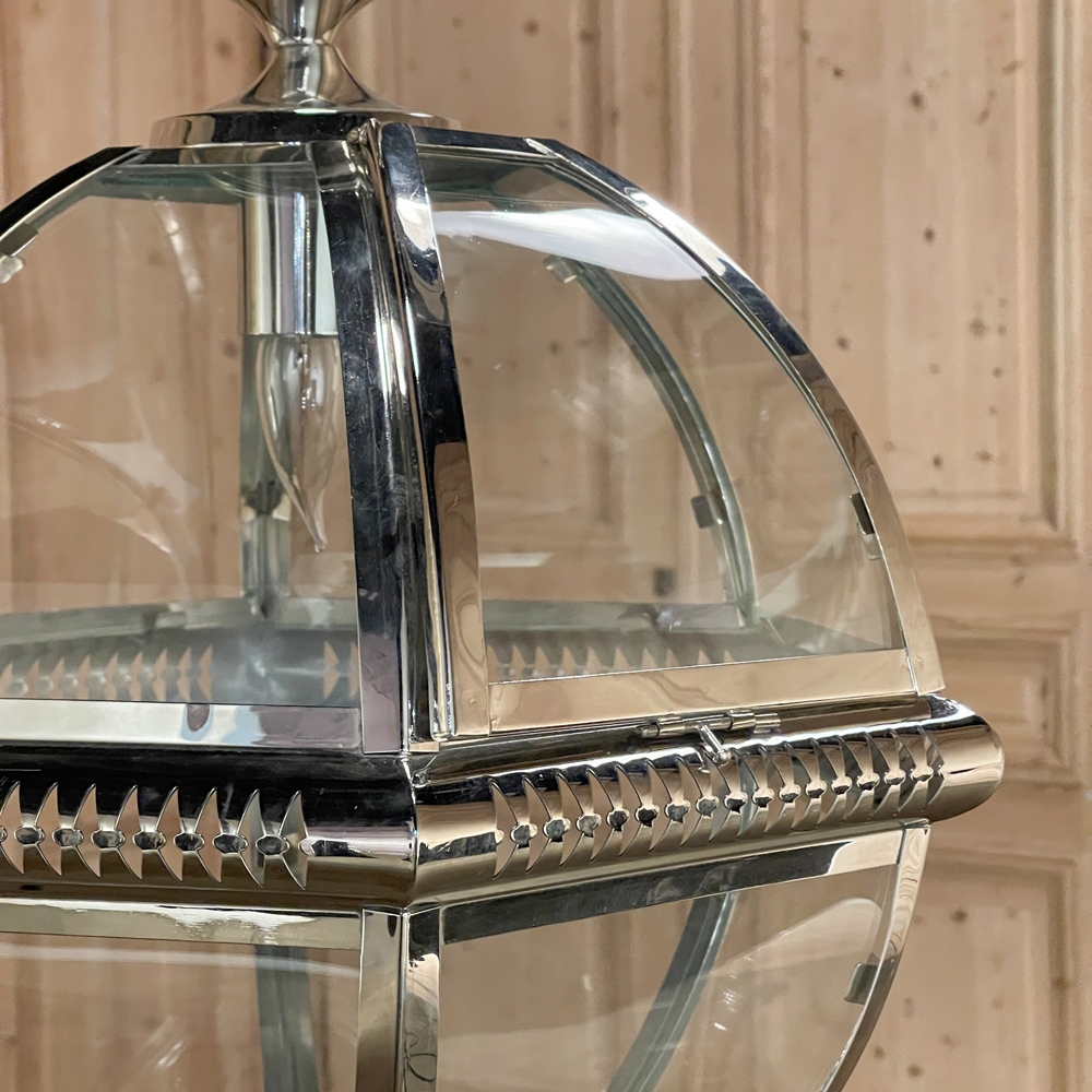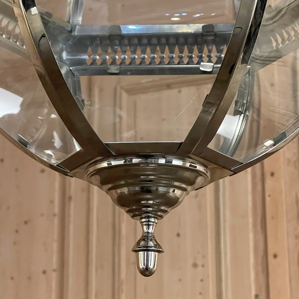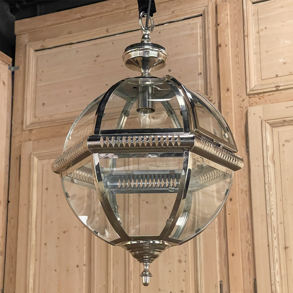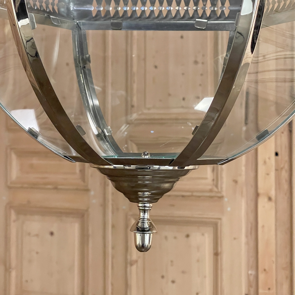 Mid-Century Nickel-Plated Orb Pendant Chandelier is beautifully crafted and glazed, and emanates light in all directions for a wonderful effect.