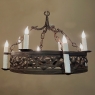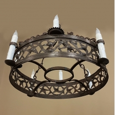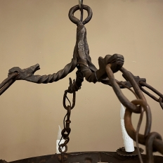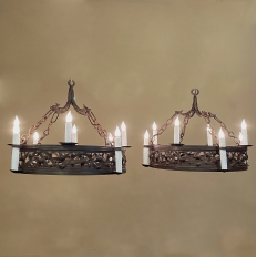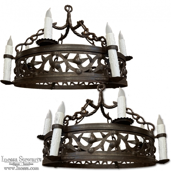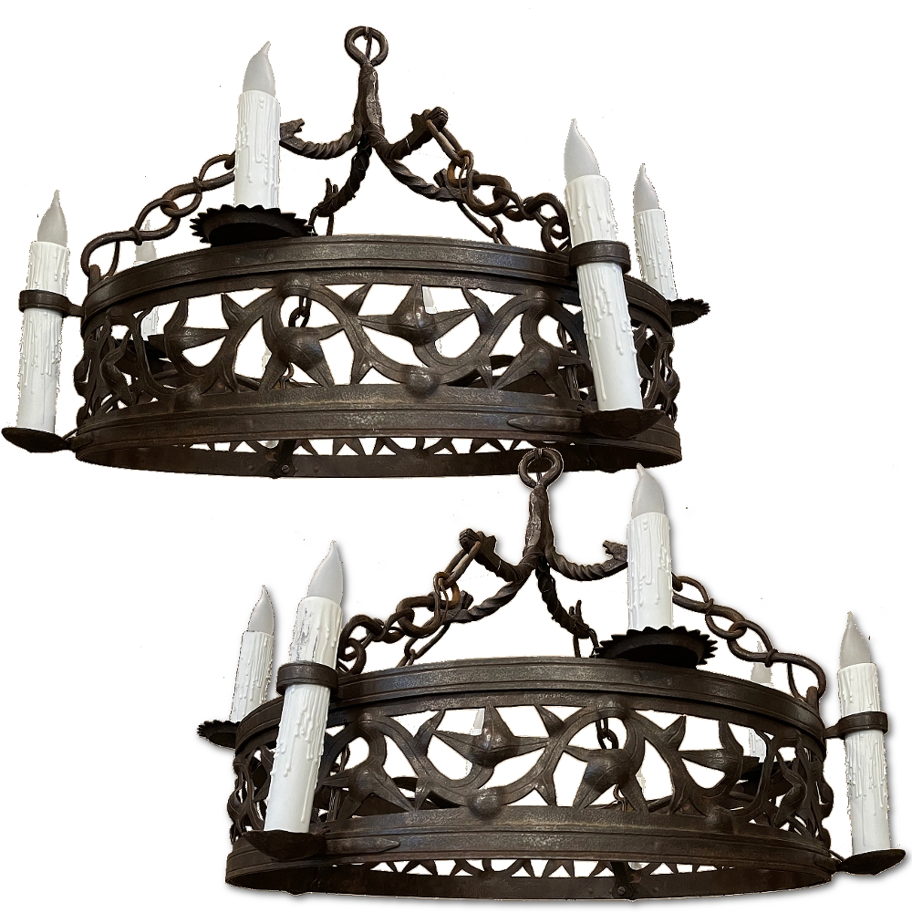 Pair Antique Country French Wrought Iron Chandeliers