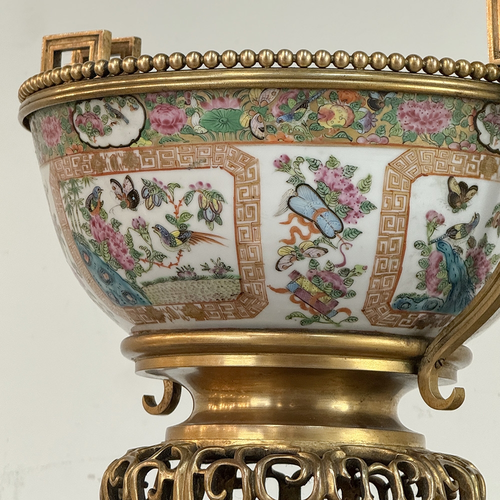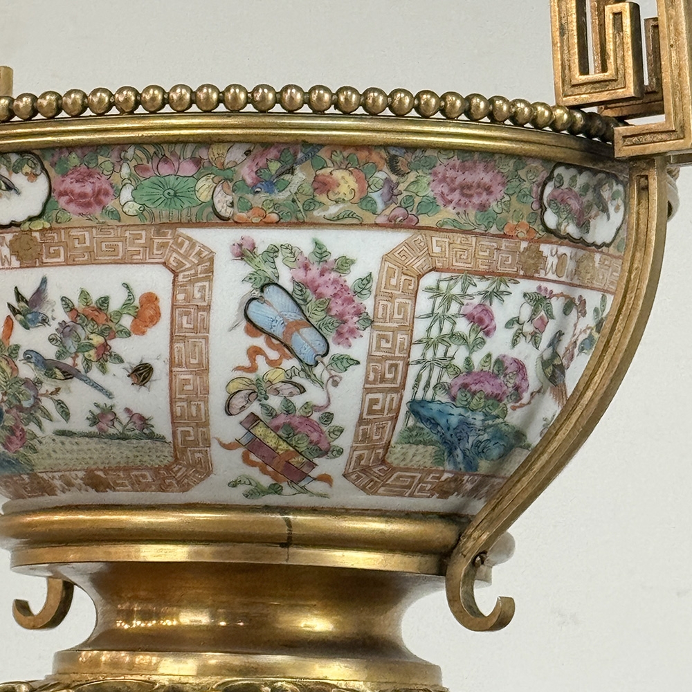 19th Century Chinese Rose Medallion Porcelain Centerpiece with French Bronze Mounts