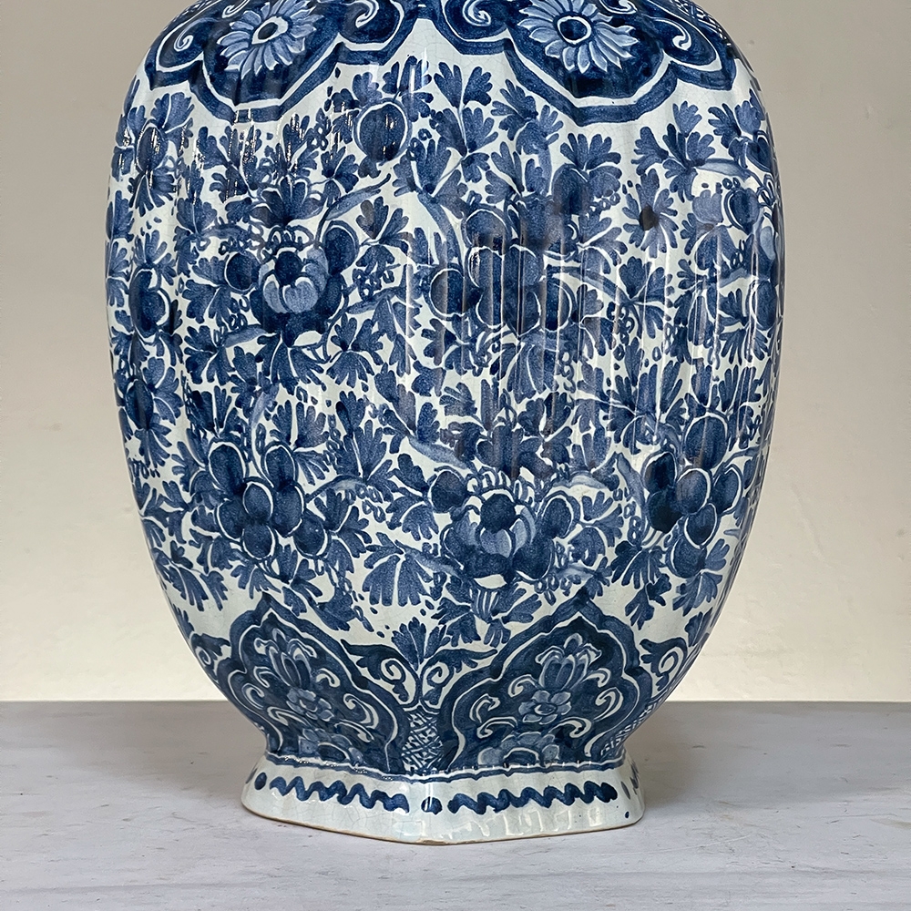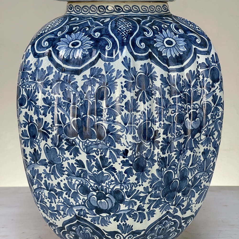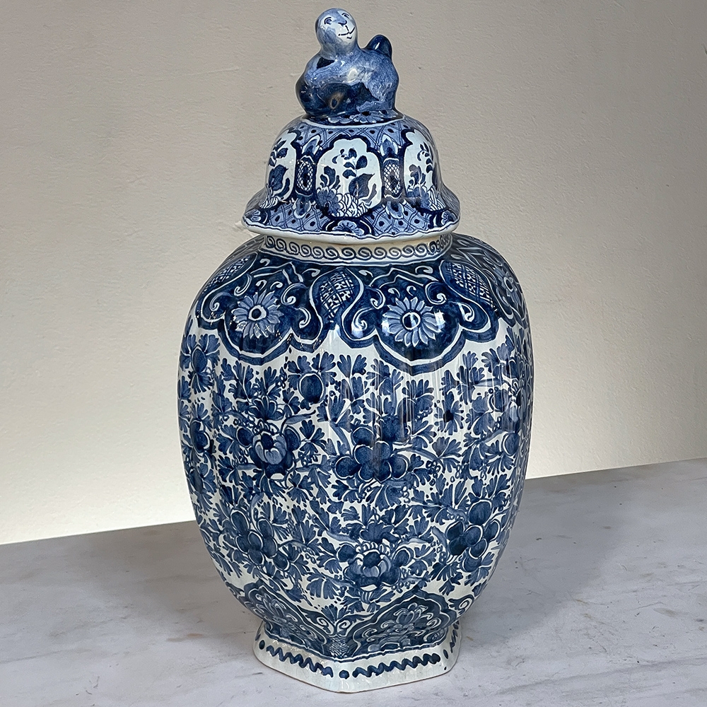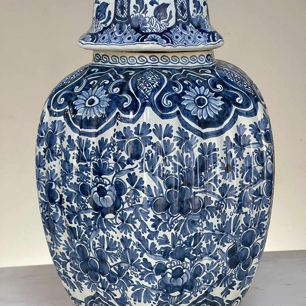19th Century Delft Hand-Painted Blue & White Lidded Urn
