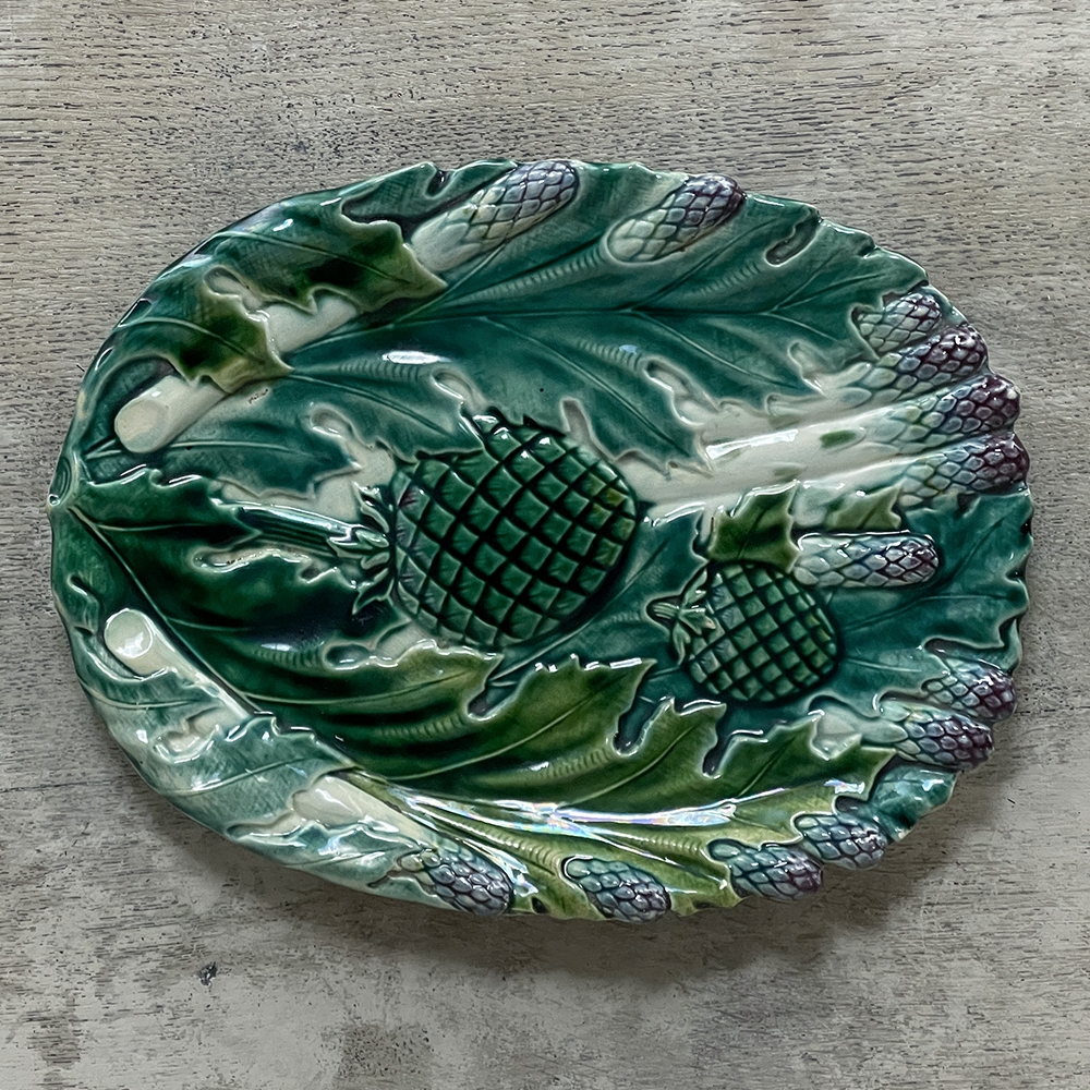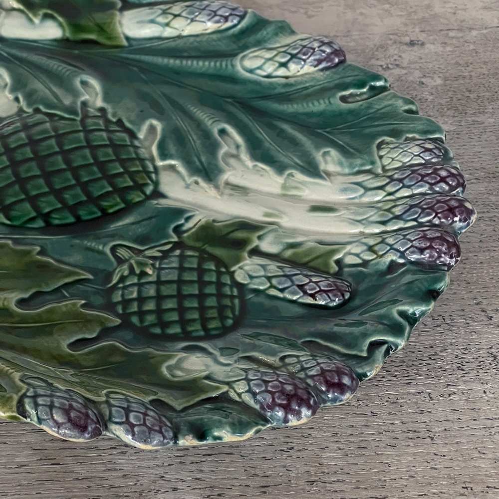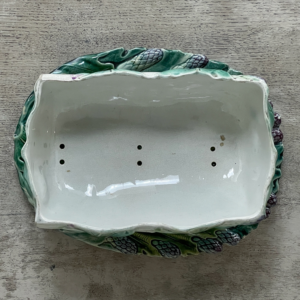 19th Century French Barbotine Covered Asparagus Server with Matching Platter by Keller & Guerin