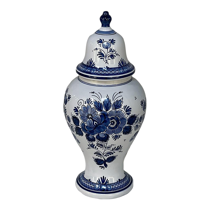 19th Century Hand-Painted Delft Blue & White Lidded Urn