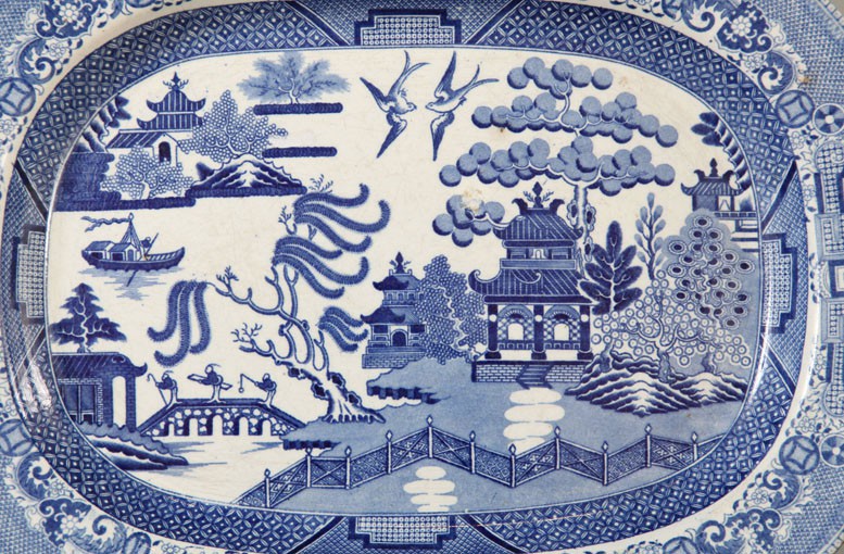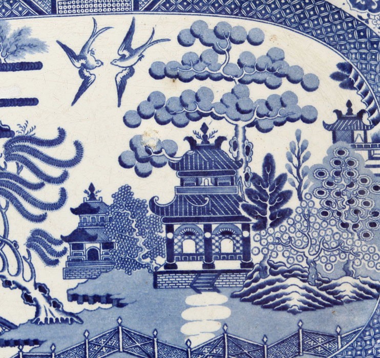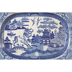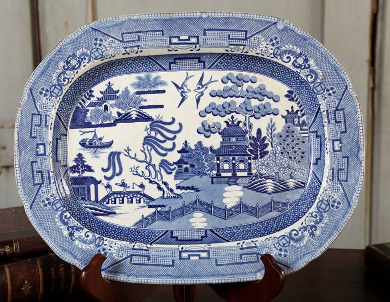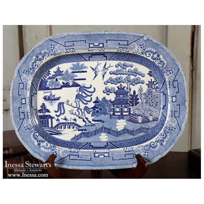 Antique English Blue and White Transferware Platter "Blue Willow"