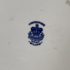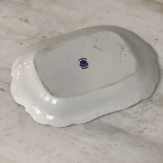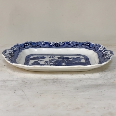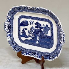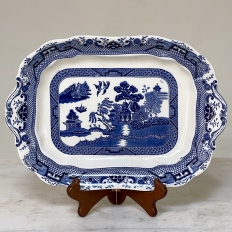 Antique Blue Willow Transferware Platter by S. Hancock & Sons is a splendid example of small, independent ceramic companies in England riding the wave of popularity of Oriental designs for the last couple of centuries. This example, beautifully preserved, was made in Stoke-on-Trent, and features the intricate bordering and fanciful garden scene with lots of geometric patterns interspersed throughout the design. This particular example is quite rare, due to the company's history to-whit: