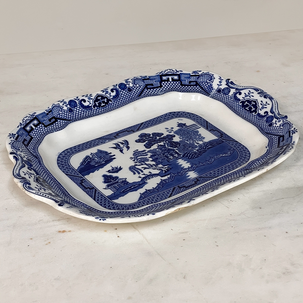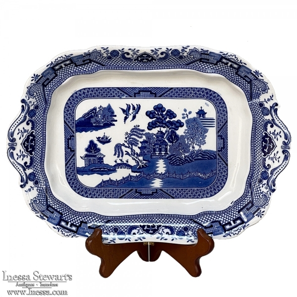 Antique Blue Willow Transferware Platter by S. Hancock & Sons