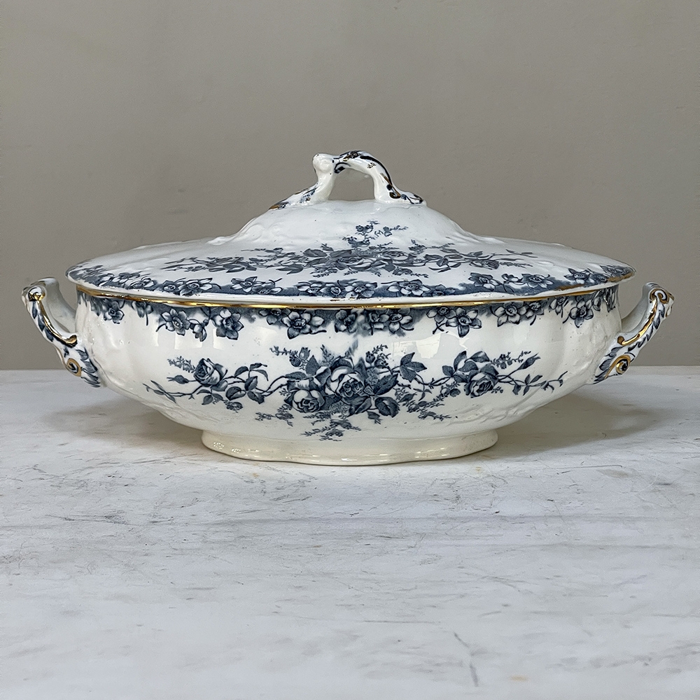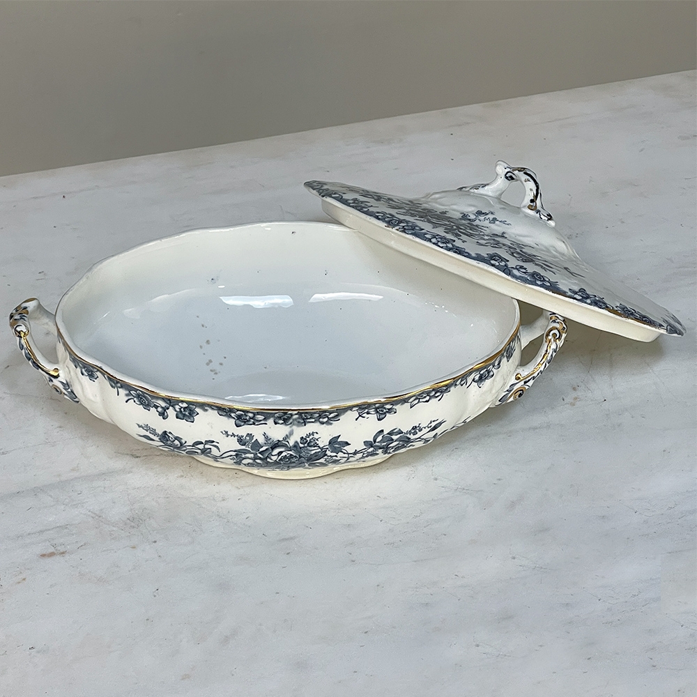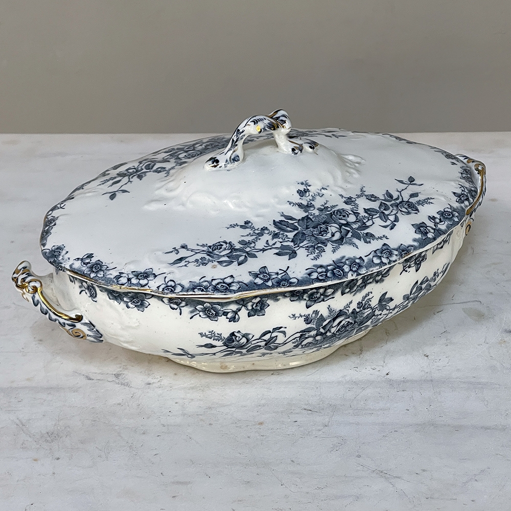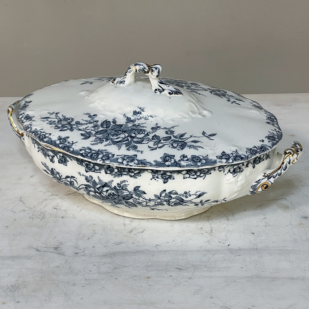 Antique English Blue & White Transferware Lidded Tureen by S. Hancock & Sons