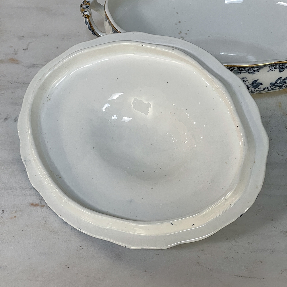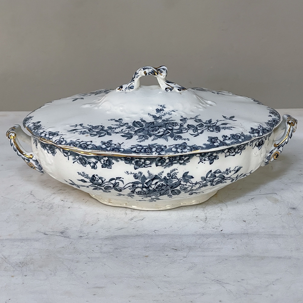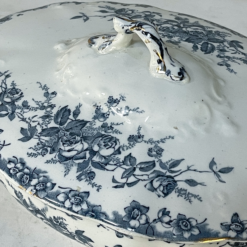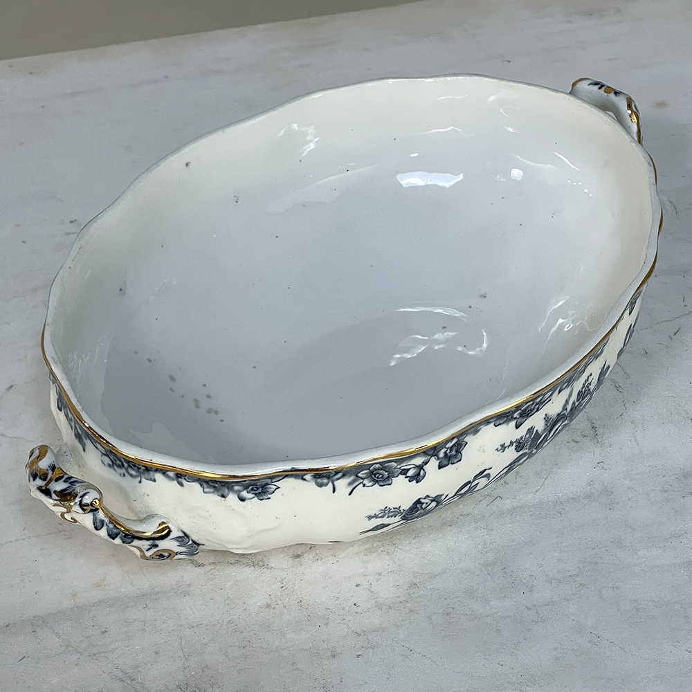 Antique English Blue & White Transferware Lidded Tureen by S. Hancock & Sons