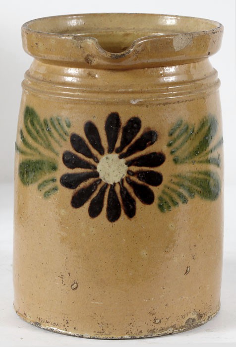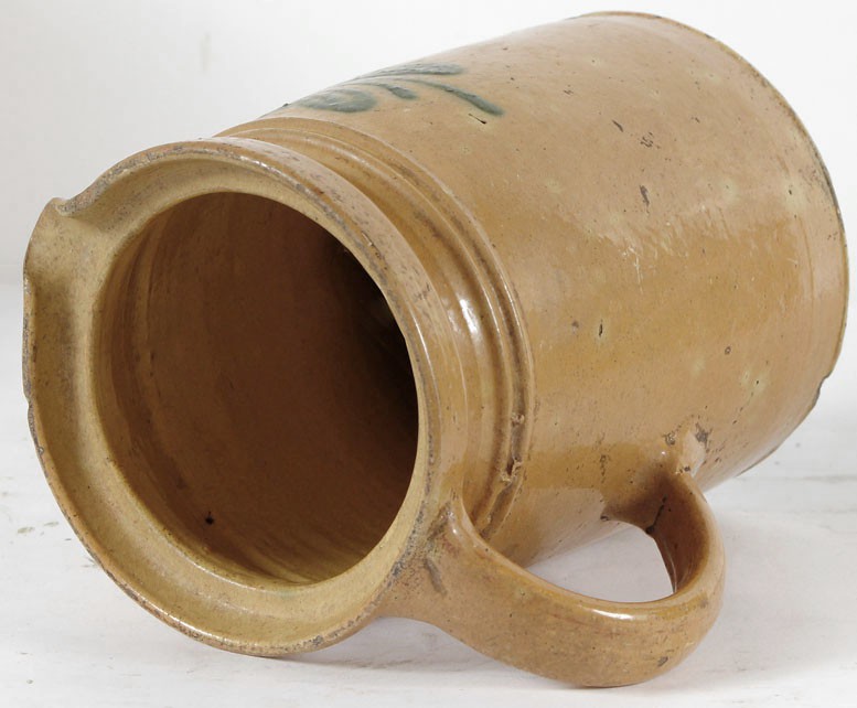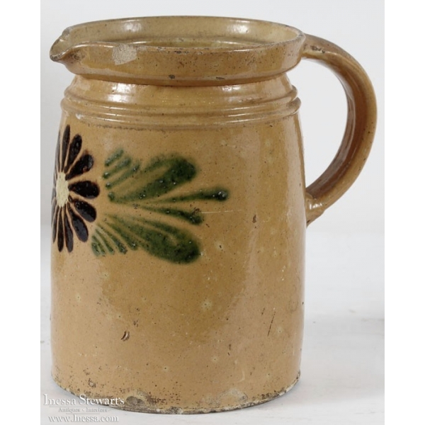 The region in France around Elzas is noted for its Country French pottery, and these antique pitchers survive as one of its most popular products. Hand-thrown then fitted with a handle and "fingered" for a spout, each has been hand-painted with local charming wildflowers design then glazed to provide decade after decade of daily use.