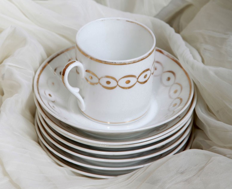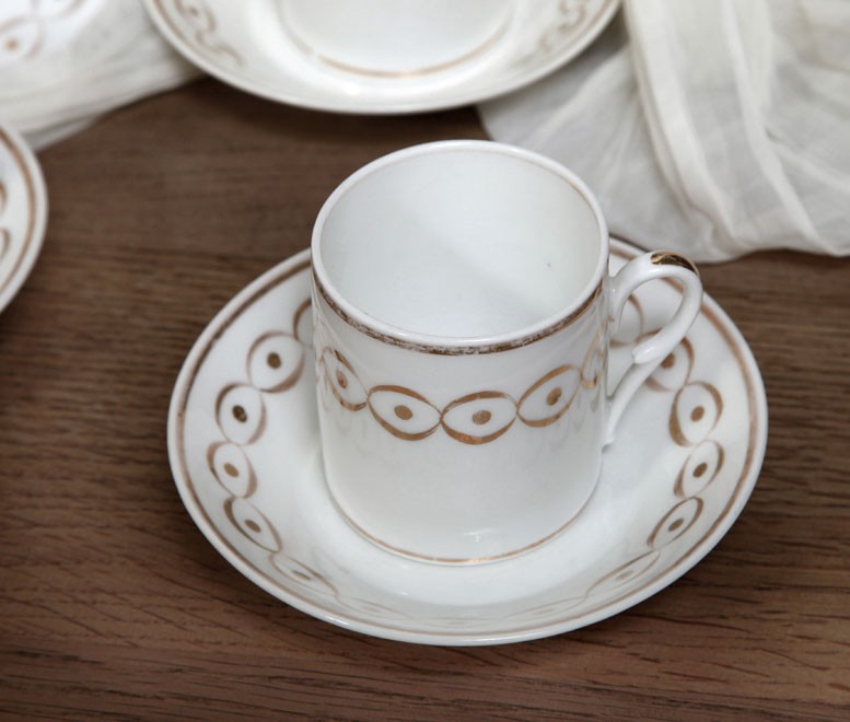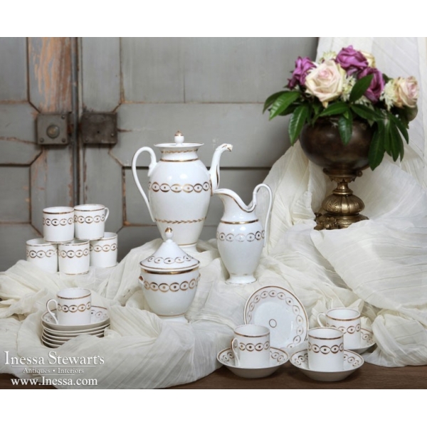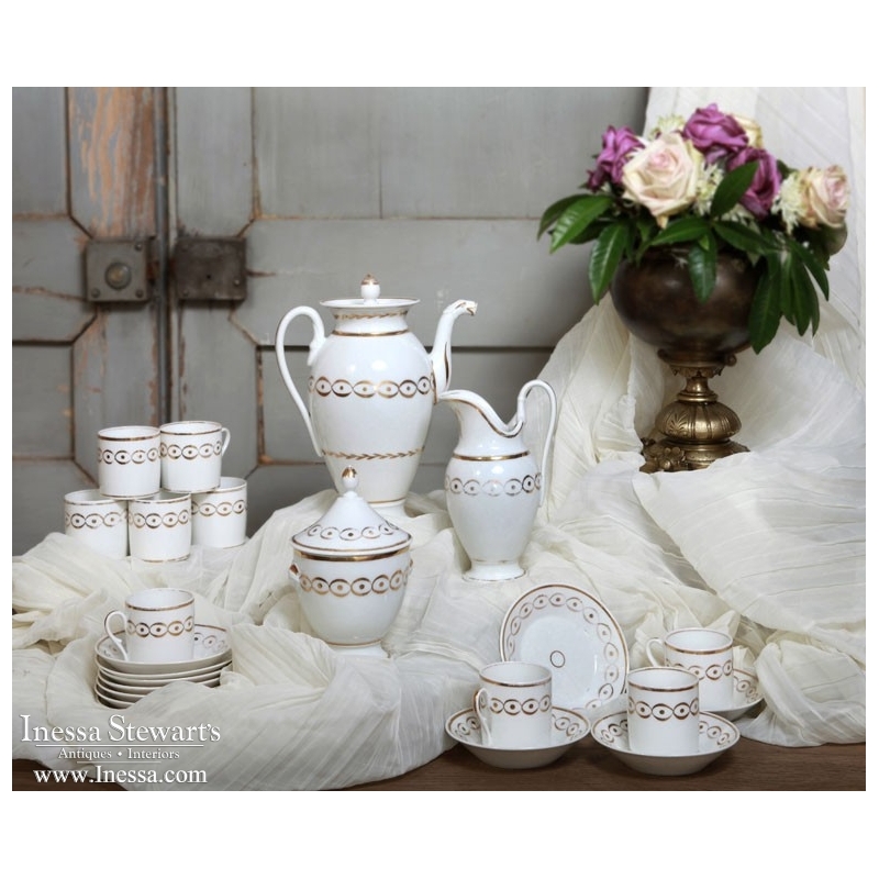SaleThis fantastic Antique Old Paris Porcelain Coffee Service Set. Original hand painted gold, elegant neoclassical French style. This set would display beautifully in a vitrine or on an enfilade.