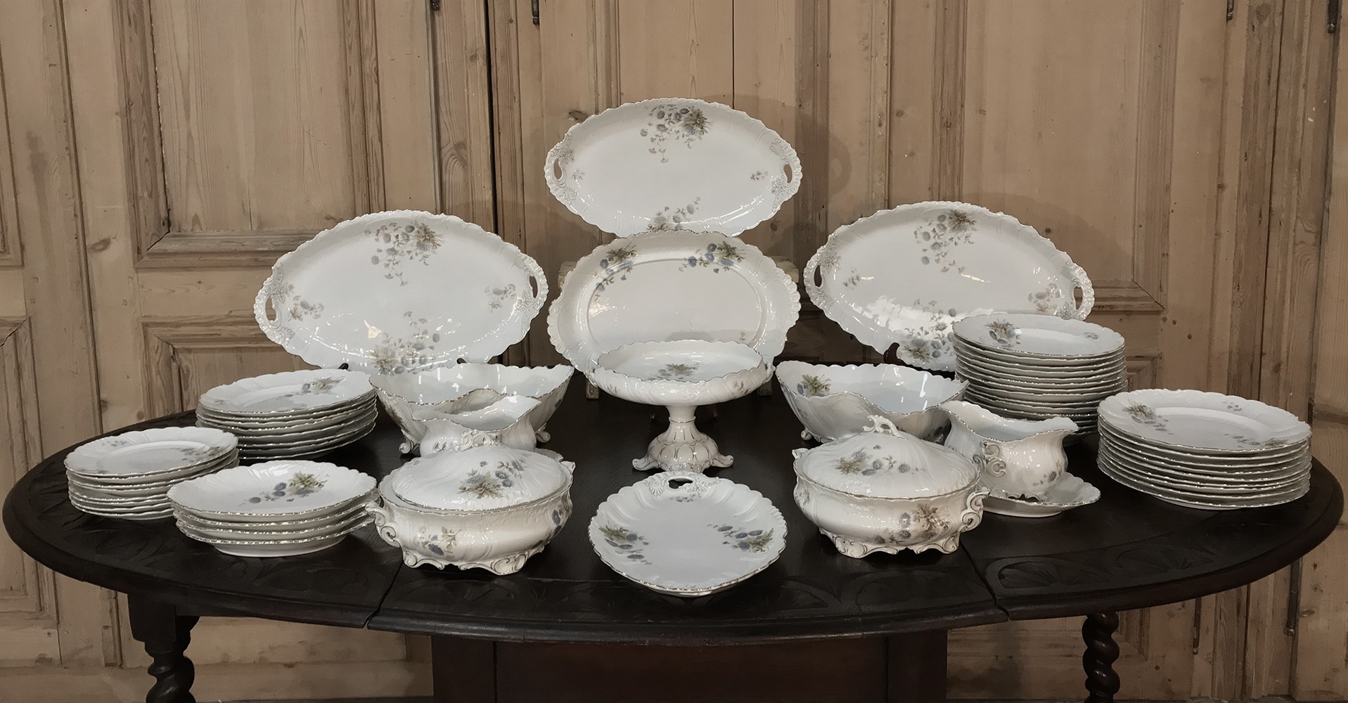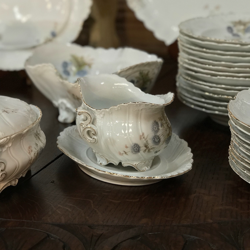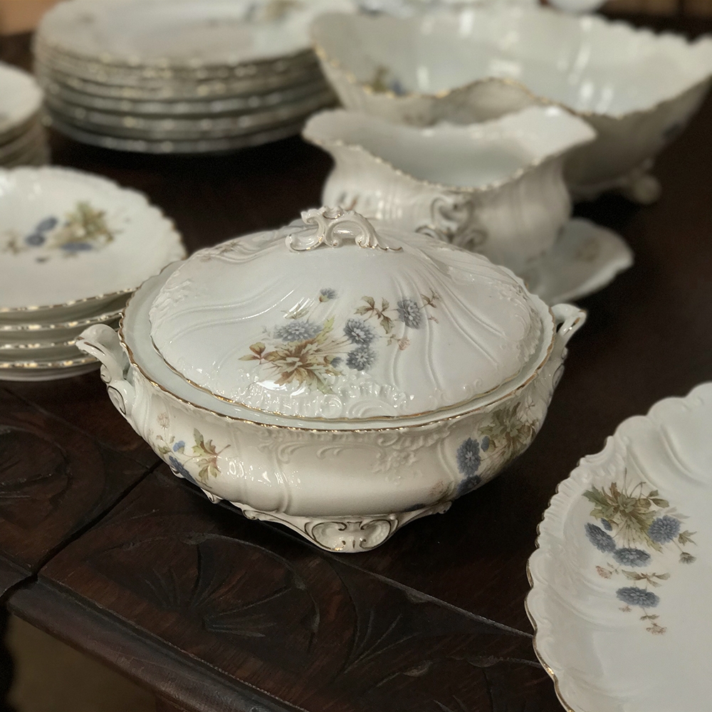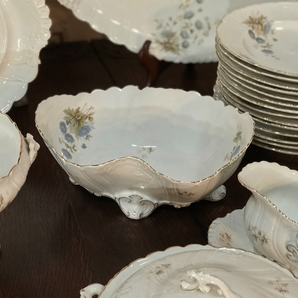 Antique 51 Piece Set of German Transferware by Geschutzt is an elegant set that features naturalistic colors in a lovely floral pattern perfect for entertaining in style!